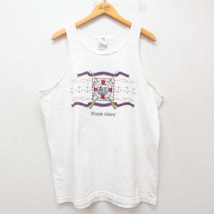 【商品名】 XL★古着 ビンテージ タンクトップ メンズ 00年代 00s イカリ 浮輪 コットン クルーネック 白