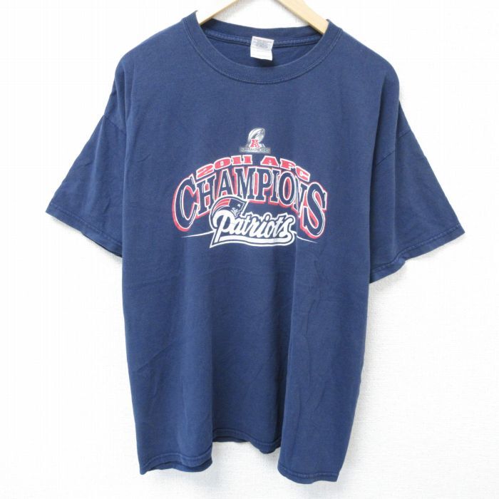 【商品名】 XL★古着 半袖 Tシャツ メンズ NFL ニューイングランドペイトリオッツ 大きいサイズ コットン クルーネック 紺 アメフト スーパーボウル