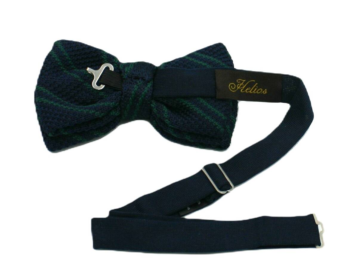 【新品】送料無料 Helios KNIT BIAS BOW TIE NAVY /蝶ネクタイ・ボウタイ・二枚羽・男女兼用・フォーマル・カジュアル・ニットタイ