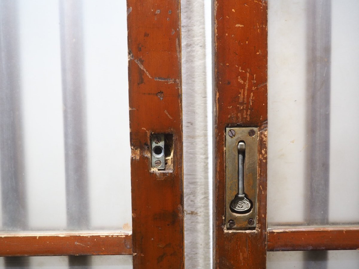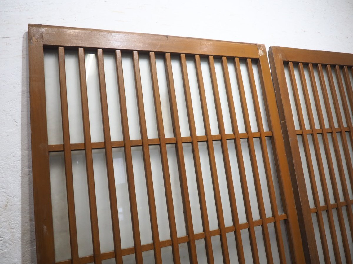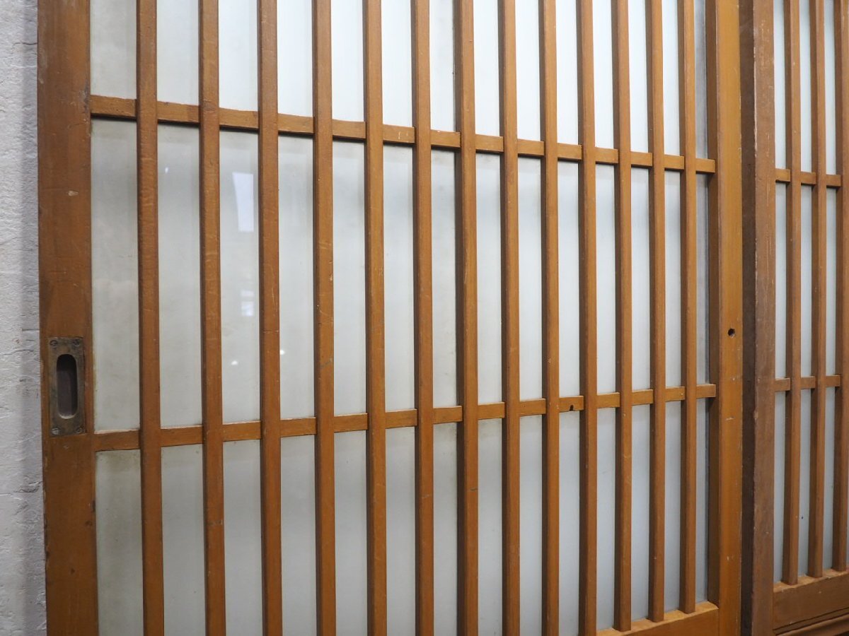 商品情報 | ■商品詳細■ ビンテージの古い木製ガラス戸、2枚セットです。 長年使い込まれた味わいのある品です。 ガラスは、曇りガラスを使用しています。 一般のご家庭はもちろん、レトロな店舗什器にもお勧めです。 経年の傷や欠け、染みや塗装の剥がれ、 下部に痛みや欠け等がありますが、使用には問題ありません。 古い塗装のため、配送中に多少剥がれることがありますので、予めご了承下さい。 ガラスにヒビや割れはありません。 古い物とご理解いただければ幸いです。 ご不明な点などありましたら、質問欄にてお願いします。 ■サイズ■ 全体(最大値) (H 176cm×W 88,5cm×D 3cm)×2枚 竪框 4,5cm 鴨居に入る部分 2cm 多少の誤差はご了承下さい。 ドライバー1人での配達になりますので、場合(通路が狭い等)によっては 荷運びのお手伝いをお願いすることがあります。 商品は玄関先までの配達になります。 |
