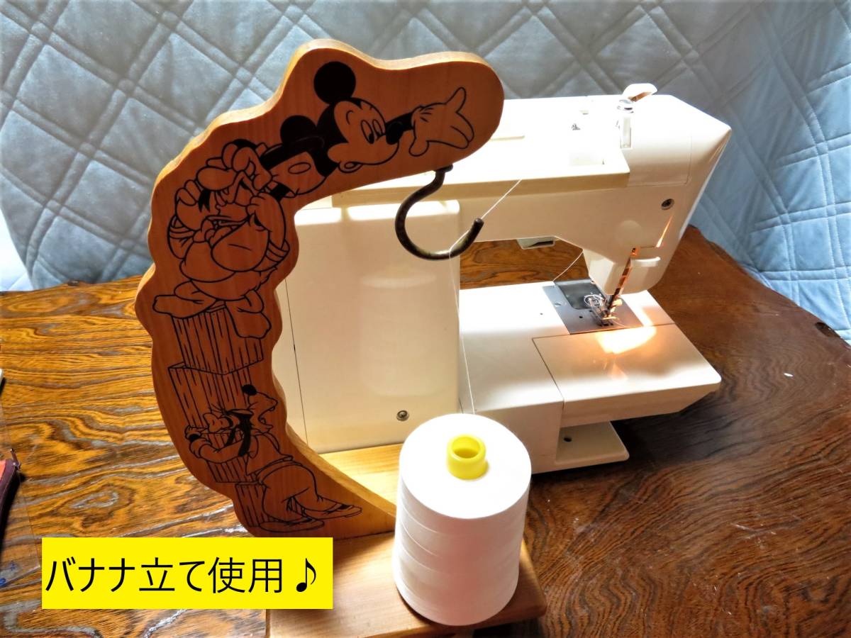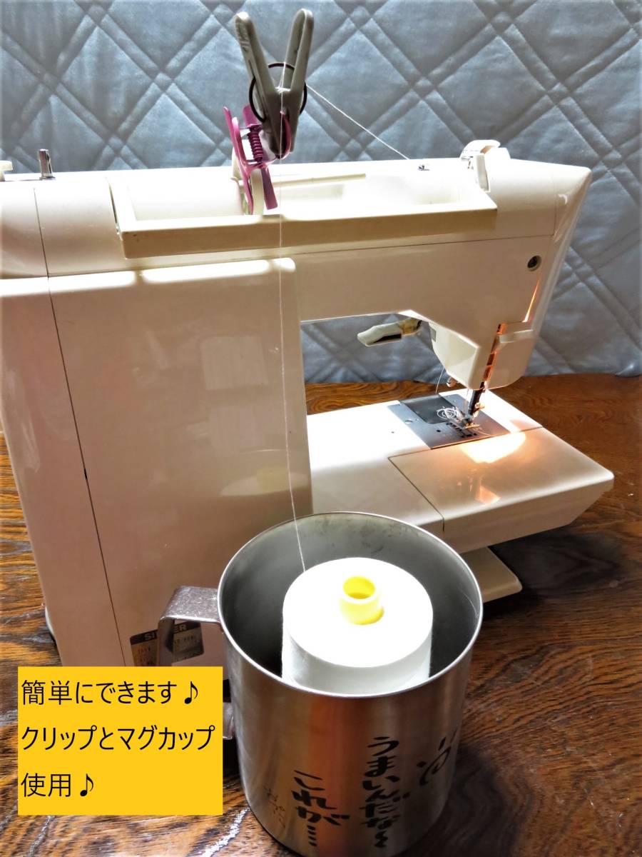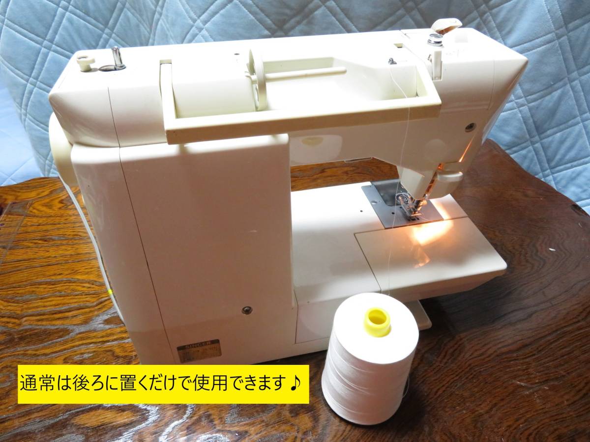 糸の巻きが大きいので、小さな糸用の糸置きしか付いていない家庭用ミシンには直接セットできません。