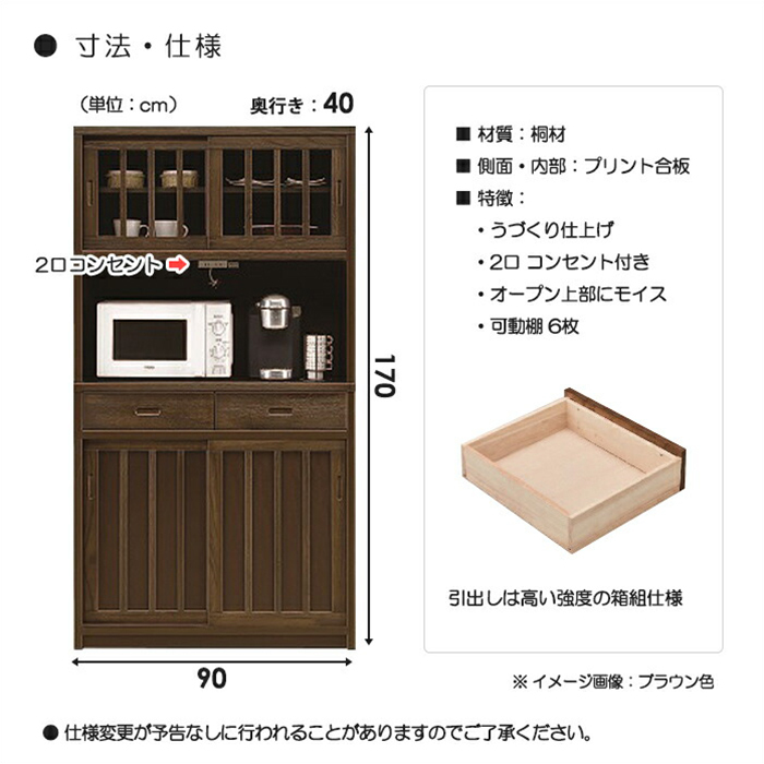 国産 モイス付き 和風 幅90cm オープンダイニングボード レンジ 調湿機能 グラフィックス棚受けダボ スライド戸 桐材 ホワイトウォッシュ