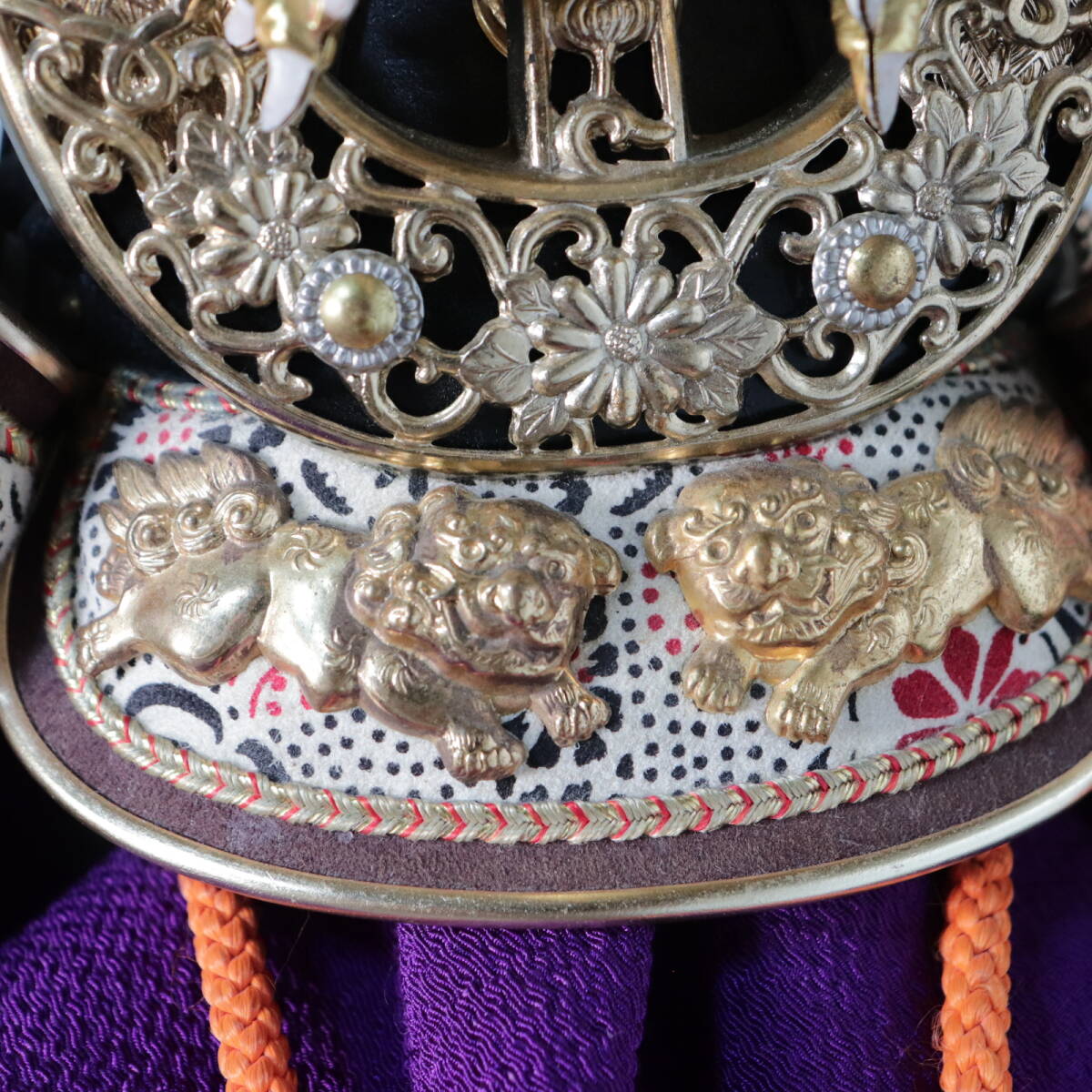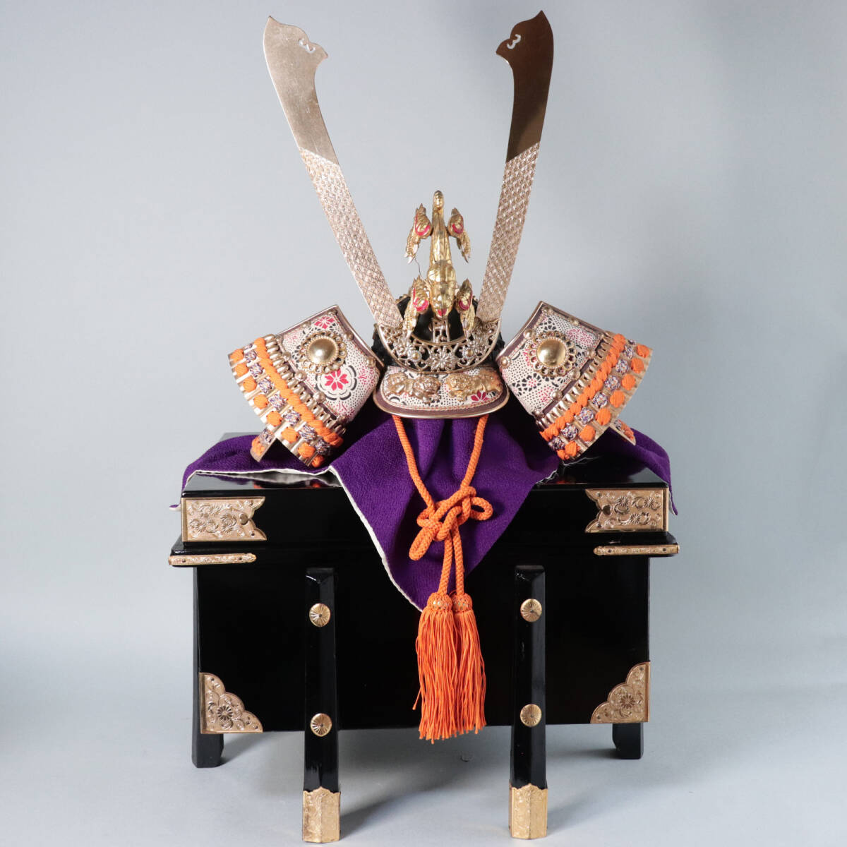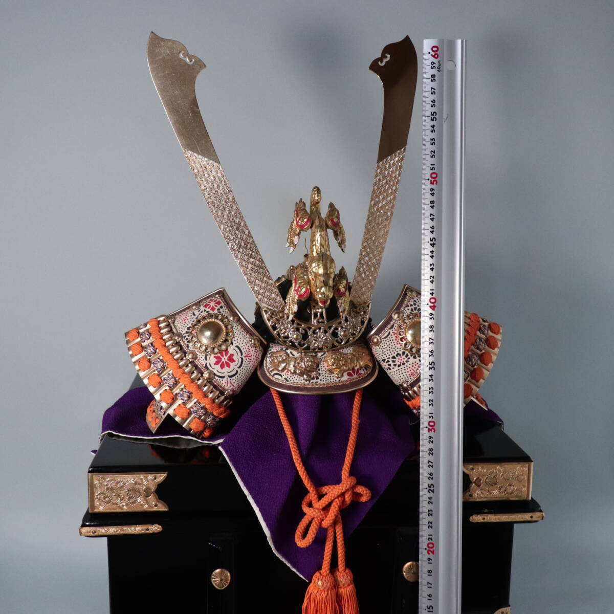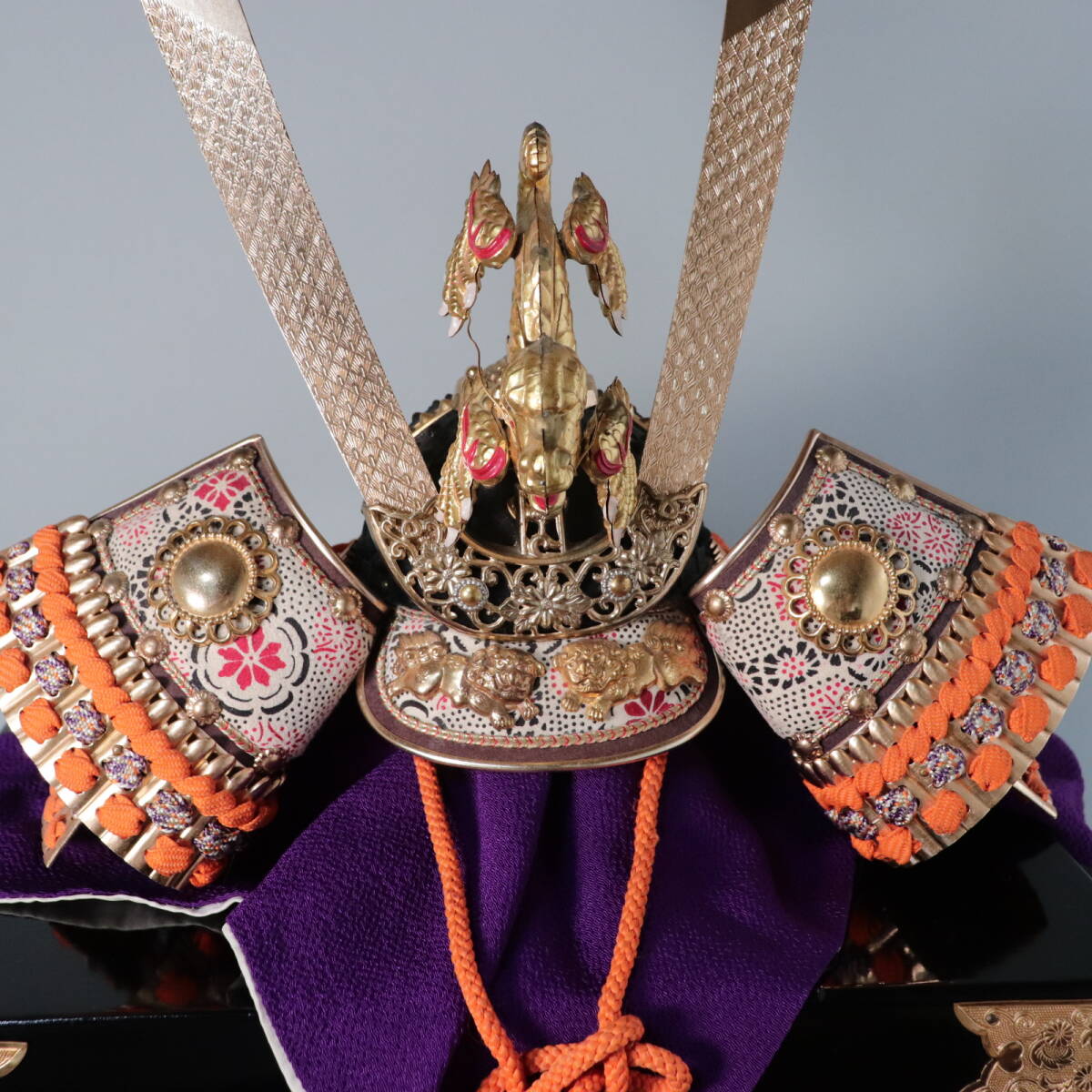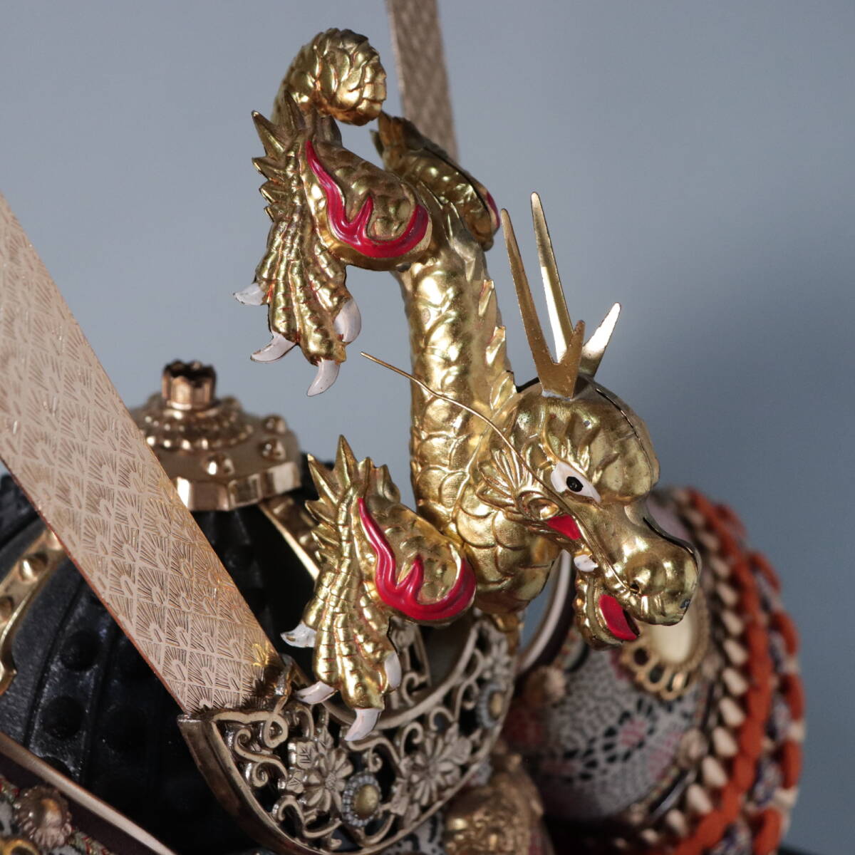 立体的な昇り龍の前立てが特徴の五月人形用兜飾りです。