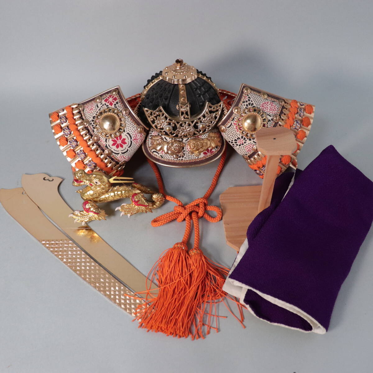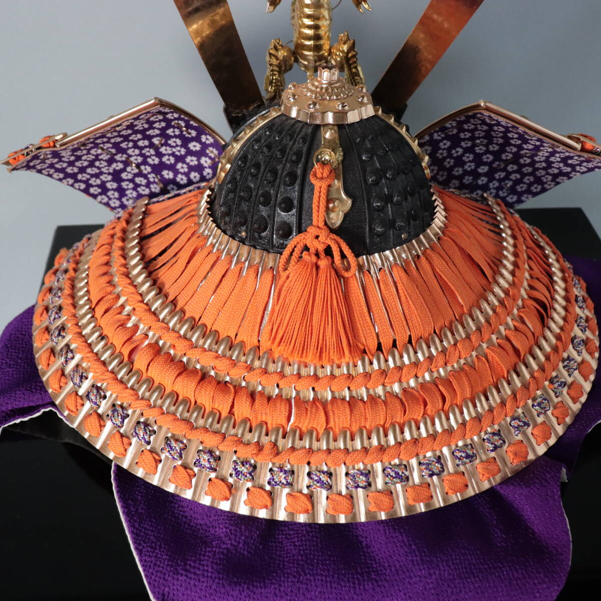 五月人形 兜飾り 龍前立て 金龍 昇り龍 鎧飾り 子供の日 節句飾り 彫金細工 飾り兜 鎧兜 戦国武将 将軍 F0607C6