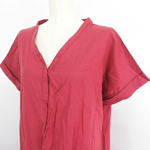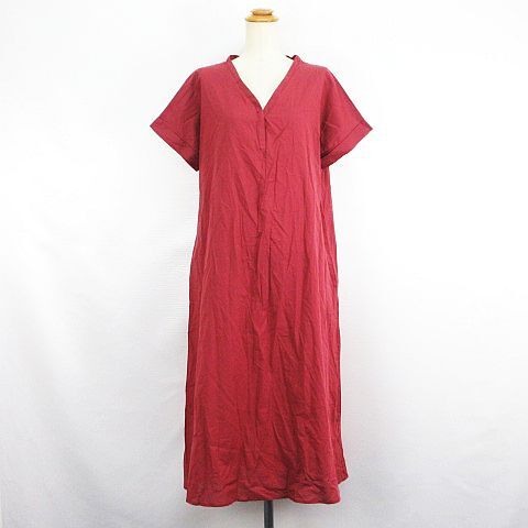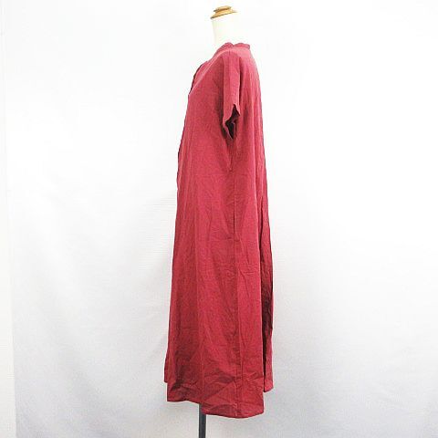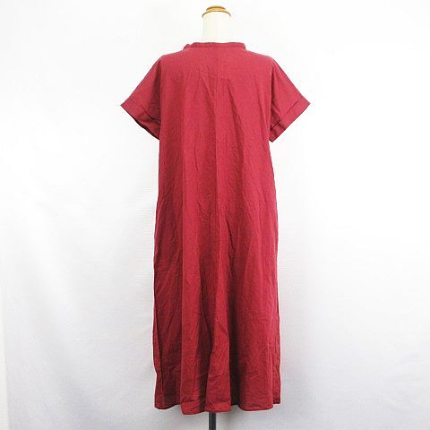 未使用品 アースミュージック&エコロジー ワンピース 半袖 ロング丈 ヒヨクヘンリープルオーバーワンピース コットン F ダークピンク ※EKM レディース