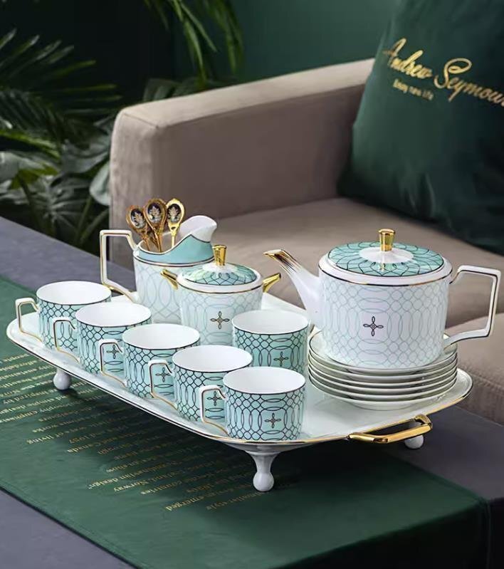 ティーポット&カップ&ソーサー&ミルクポット&シュガーポット&トレー 16点セット 洋食器 ギャラリー アフタヌーンティー
