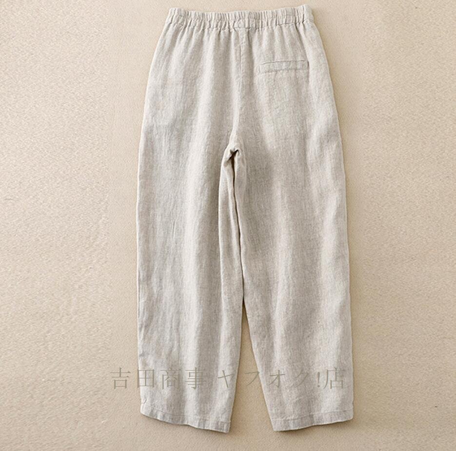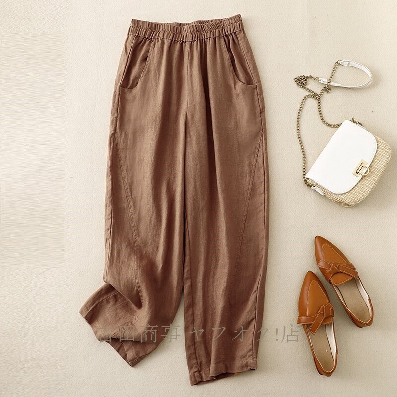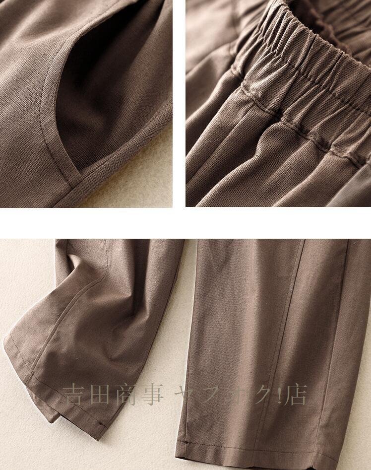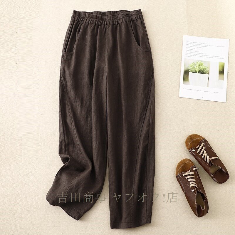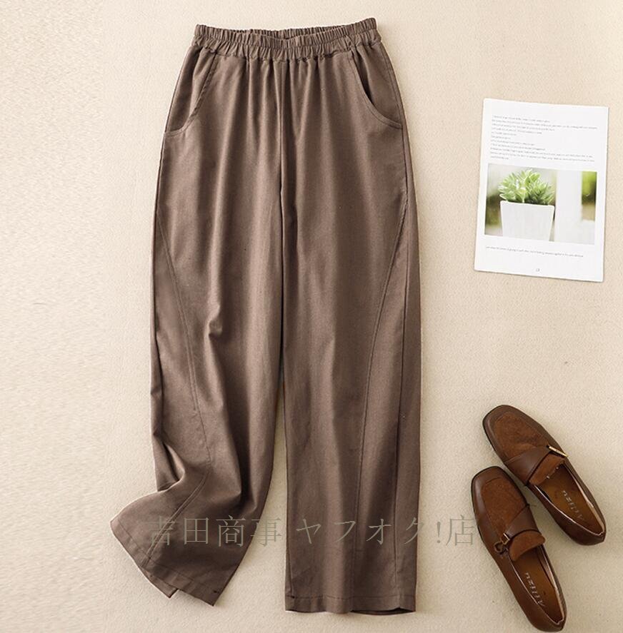 A1019☆新品春夏 ワイドパンツ レディース ゆったり ボトムス パンツ フレア ワイドパンツ 麻混 涼しい ウエストゴムパンツ カーキ