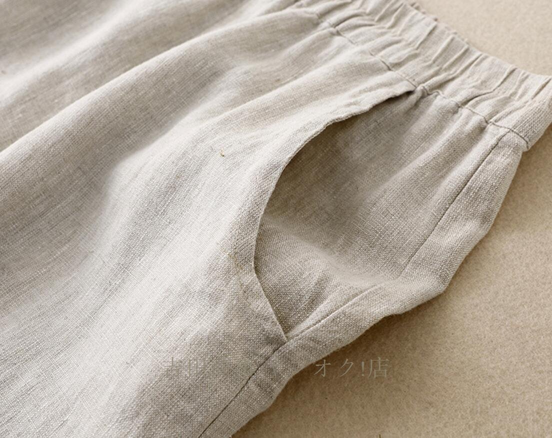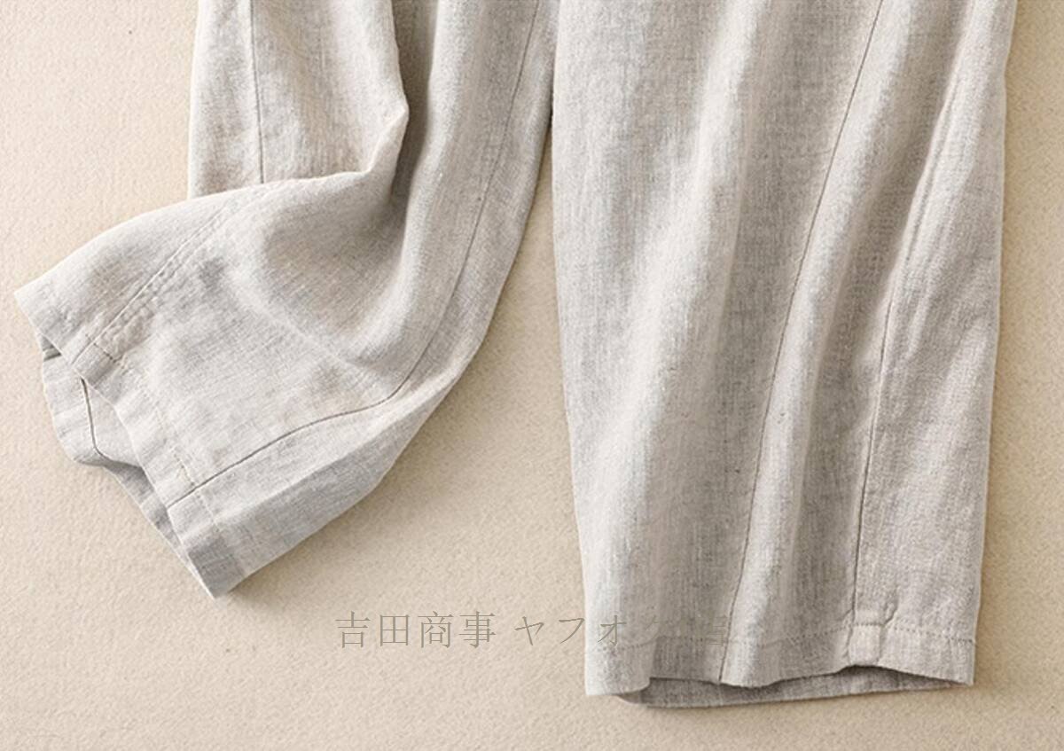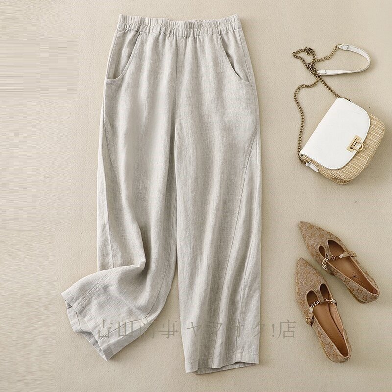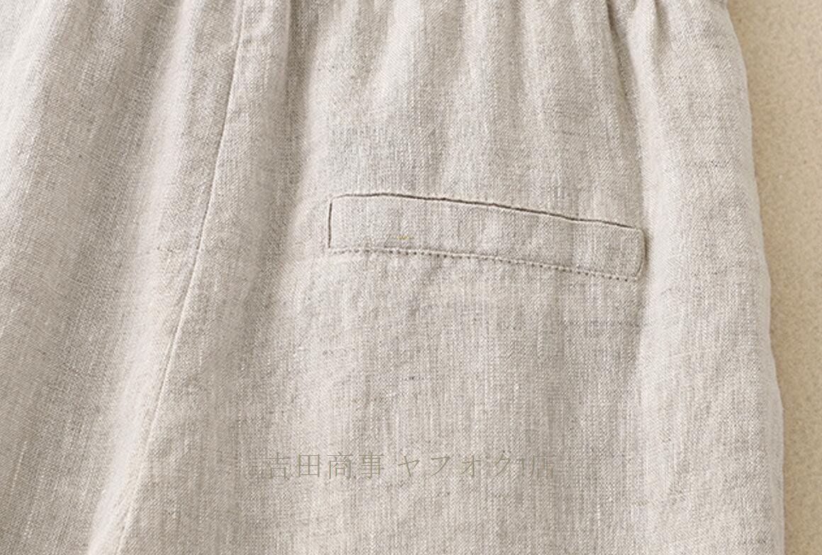 A1019☆新品春夏 ワイドパンツ レディース ゆったり ボトムス パンツ フレア ワイドパンツ 麻混 涼しい ウエストゴムパンツ カーキ