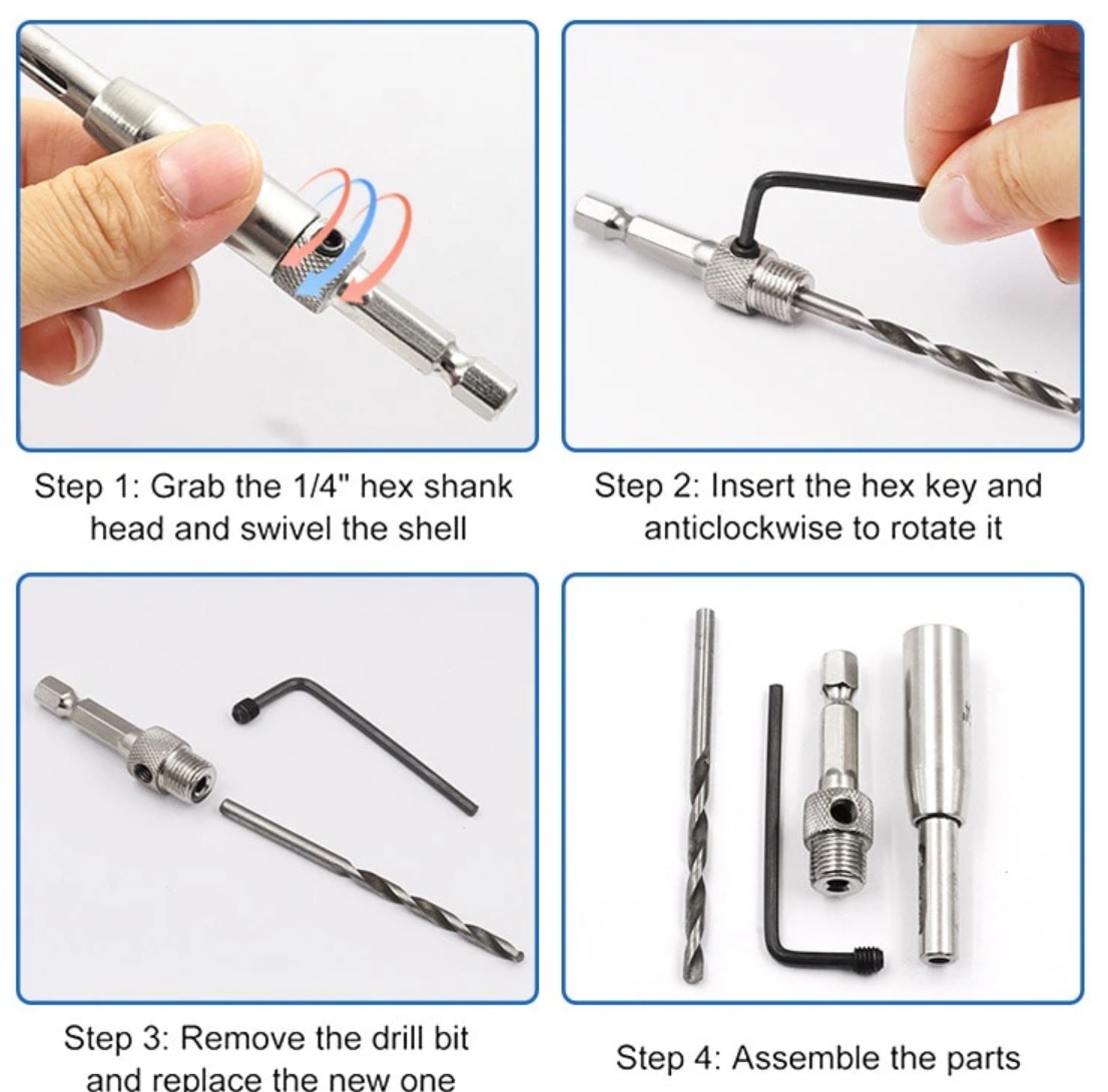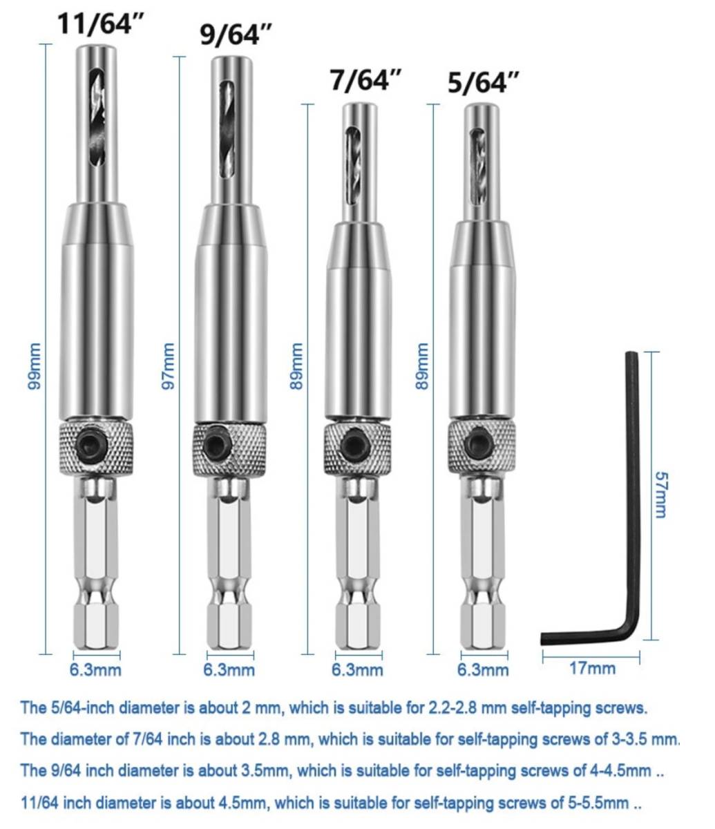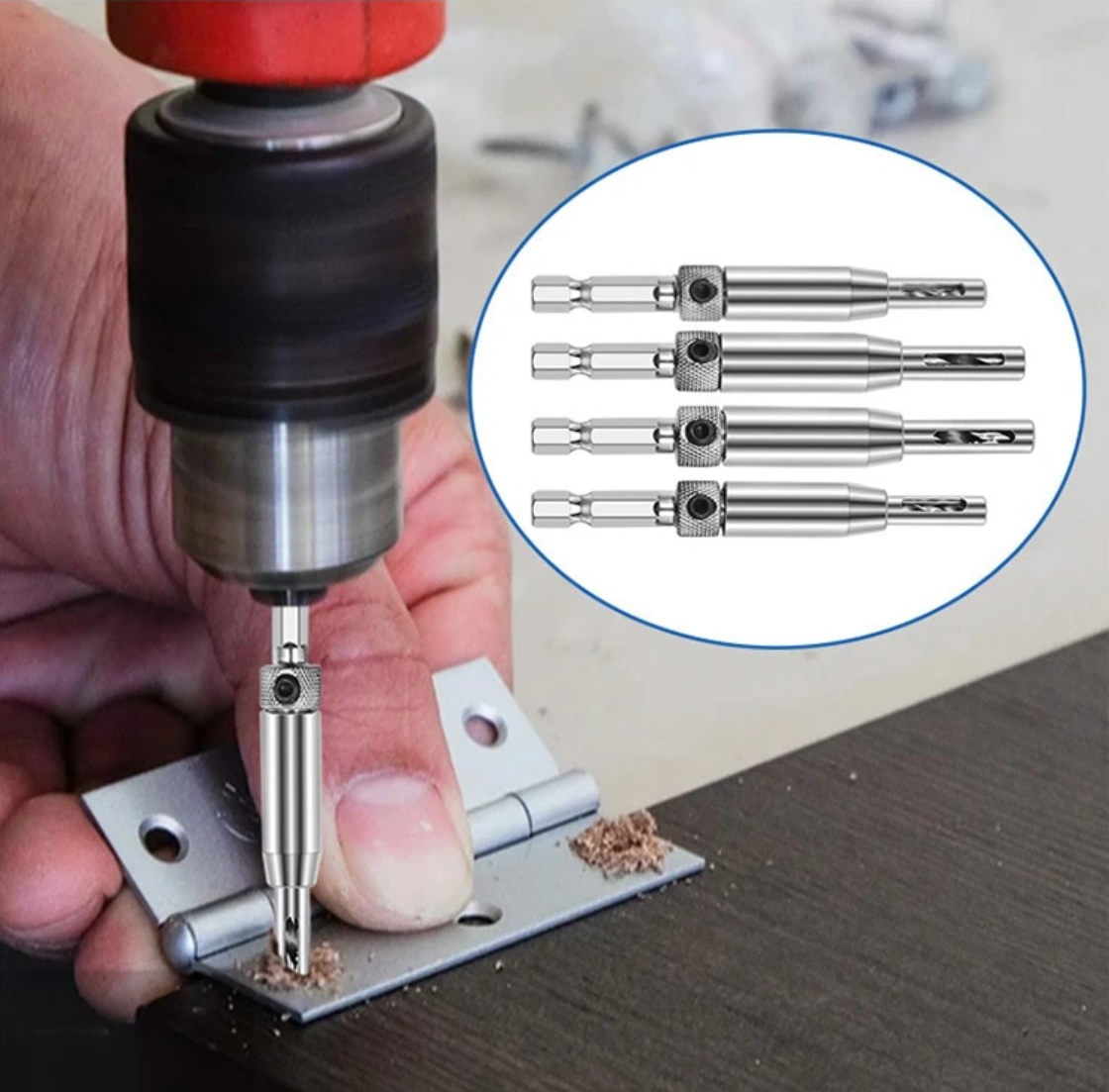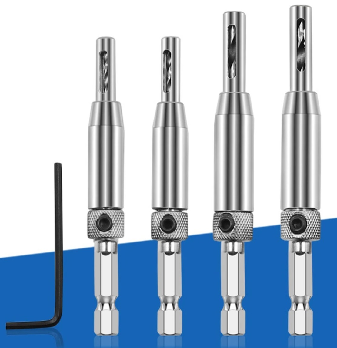 センタードリル HSS 木材 樹脂 自動中心穴あけドリル 六角シャンク 4本セット