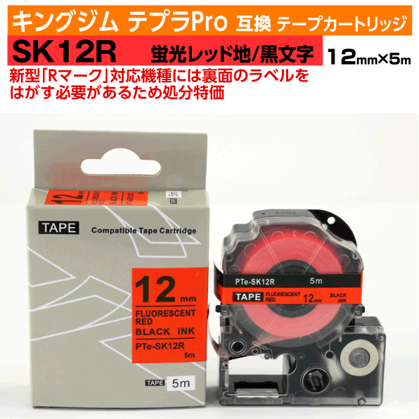 【数量限定セール】キングジム テプラPro用 互換 テープカートリッジ 旧型 SK12R〔蛍光色〕12mm幅 蛍光赤地 黒文字 蛍光レッド ブラック