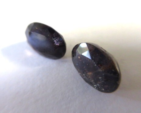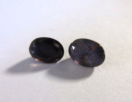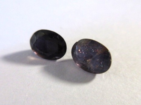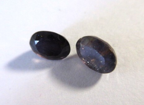 濃い藍色のアイオライト・サンストーンです。細かなキラキラが出ています。一見黒っぽく透明感がないようですが、ライトを当てますと透過性があるのがわかります。非加熱。