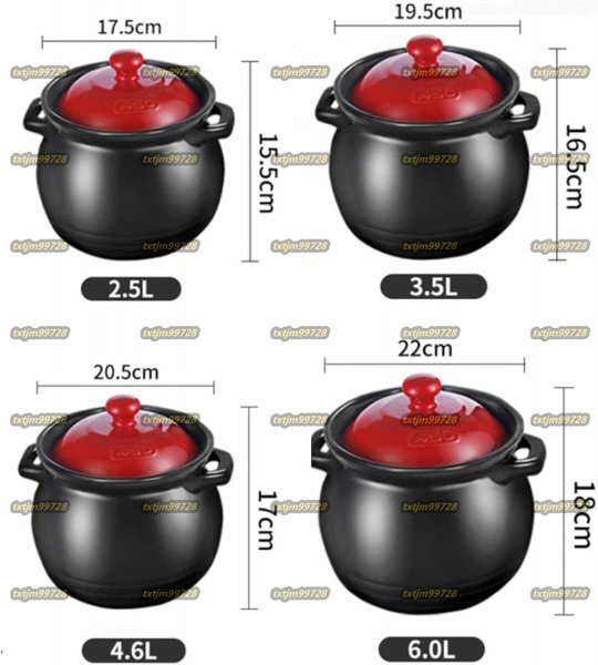 適用熱源:調理用土鍋、ガス、コンロ、オーブン、電気ストーブ、電子レンジに適しています。 電磁調理器での使用は禁止してください。