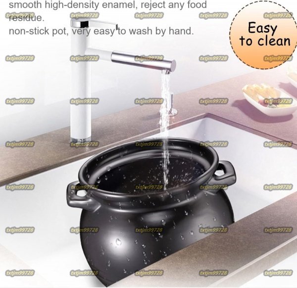 お手入れ簡単:臭いがなく、滑らかな高密度エナメルで、食品の残留物を拒否します。 手洗いがとても簡単です。 土鍋、電子レンジ、食器洗い機、冷凍庫に対応しています。