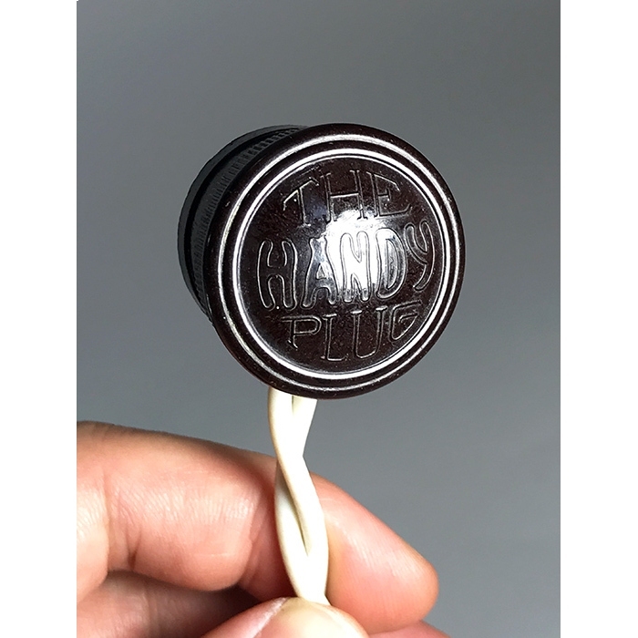 当時のスタンダードな丸いボタン型プラグですが、前面にはコミカルなフォントで、【THE HANDY PLUG】とエンボスマークがはいっており、非常にかっこいいです。