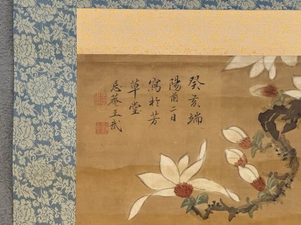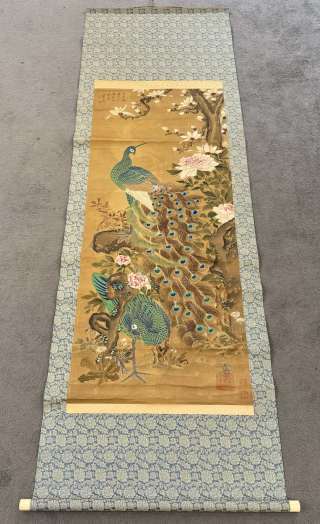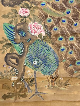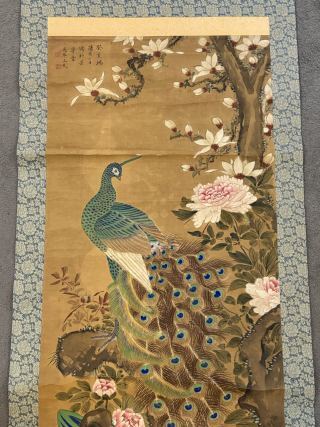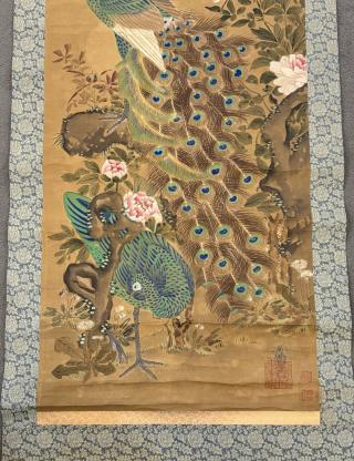 『三希堂』 中国画 古美術 [王武絹本孔雀図] 掛け軸 真筆逸品 肉筆保証 中心尺寸132X54cm ABC581