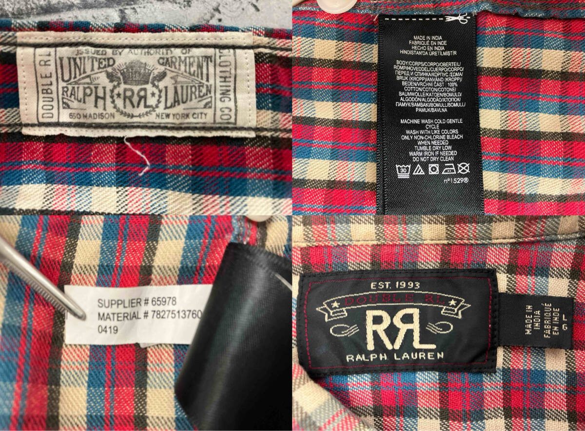 RRL RALPH LAUREN ダブルアールエル ラルフローレン チェックシャツ 長袖シャツ Lサイズ レッド |