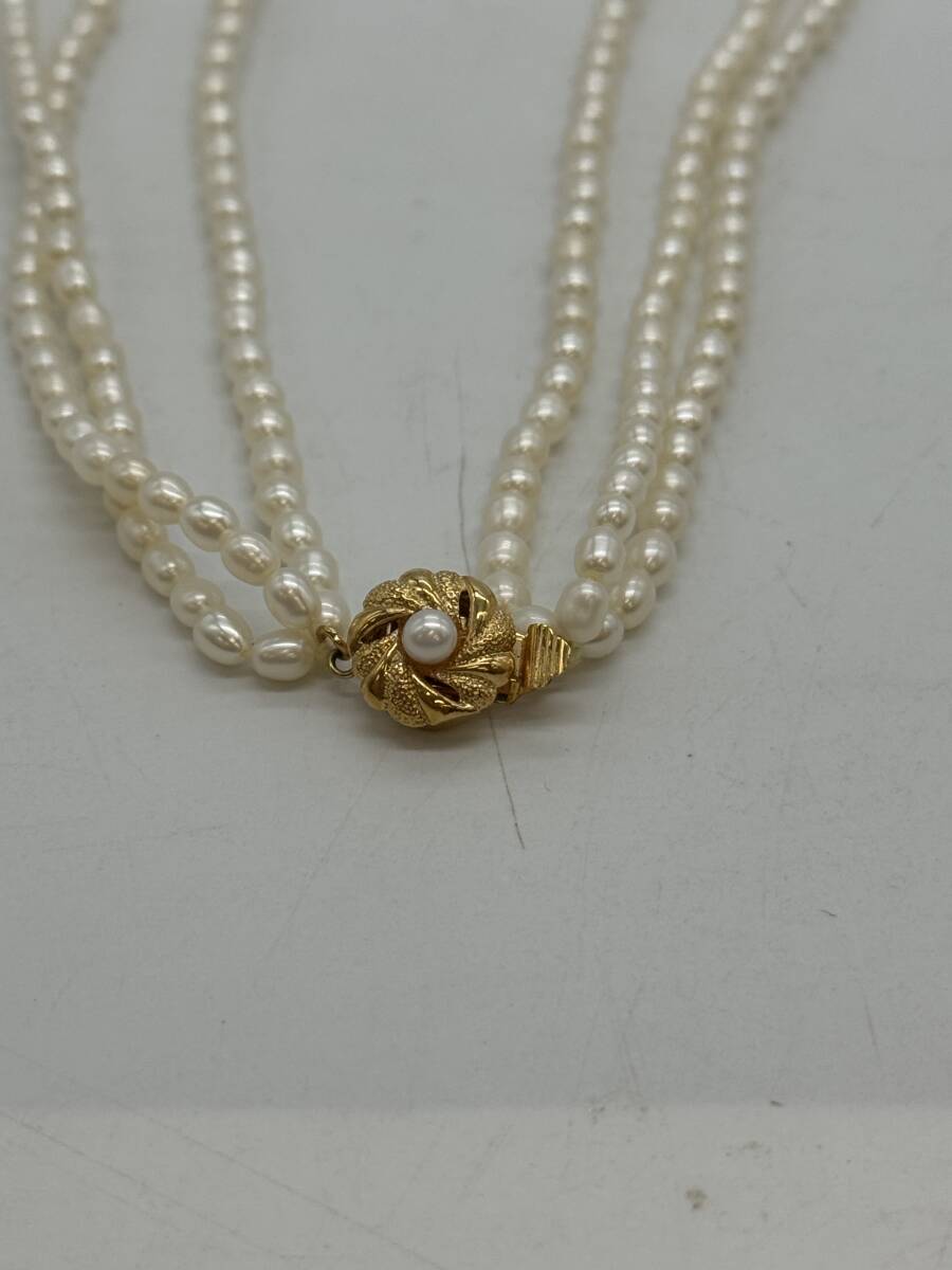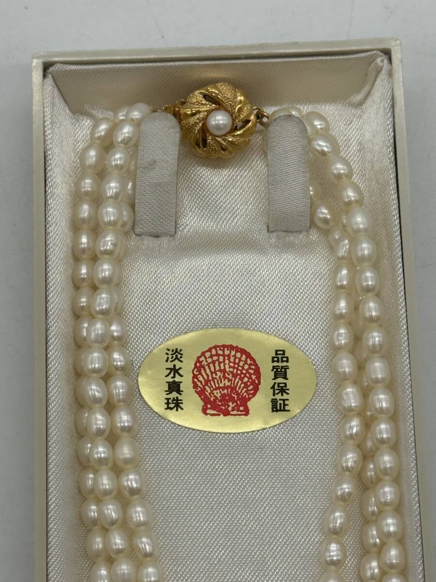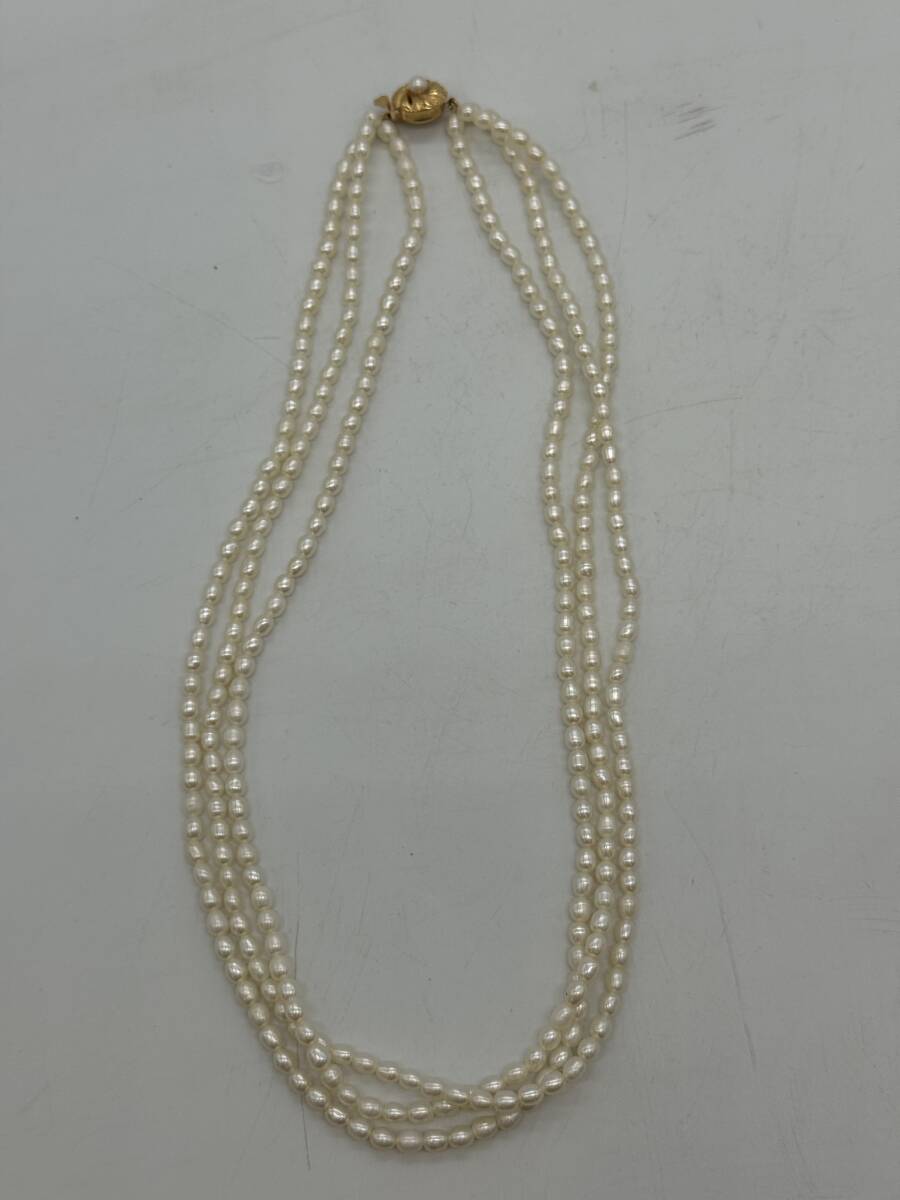 商品名:S9437〇 3連 パール ネックレス 約3.8㎜ 約4.5㎜ 留具SILVER刻印あり 淡水真珠 レディース 女性用 アクセサリー ジュエリー 冠婚葬祭【300】