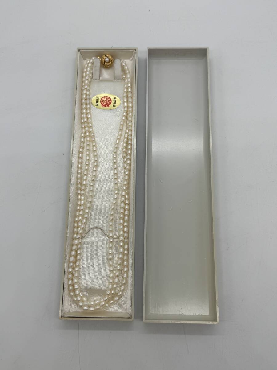 S9437〇 3連 パール ネックレス 約3.8㎜ 約4.5㎜ 留具SILVER刻印あり 淡水真珠 レディース 女性用 アクセサリー ジュエリー 冠婚葬祭