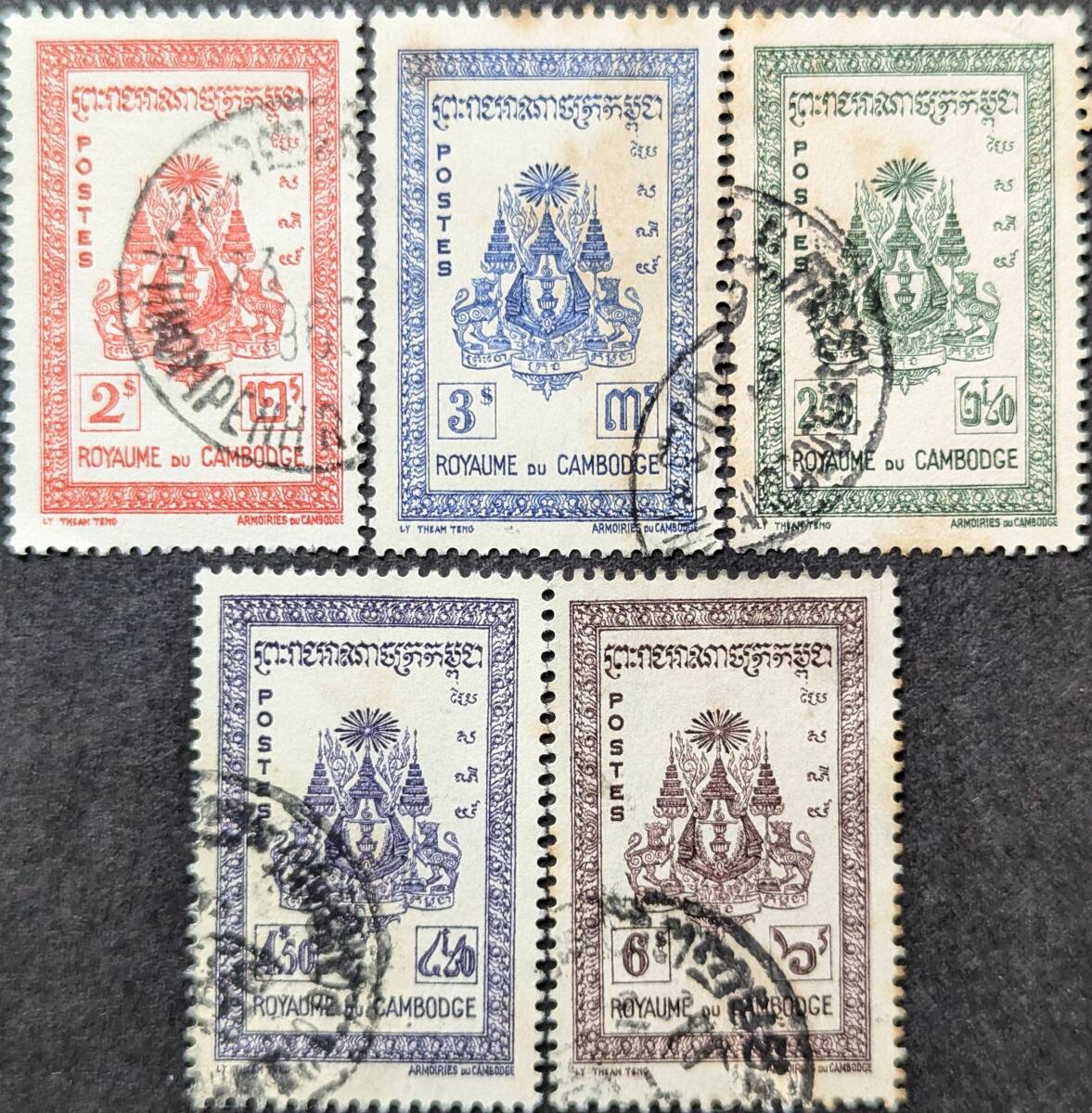 【外国切手】 カンボジア 1954年10月30日 発行 カンボジアの紋章 消印付き