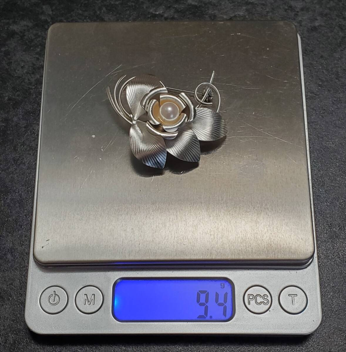 洋銀刻印 本真珠 帯留め ブローチ レディース アクセサリー 和装小物 9,4g 美品