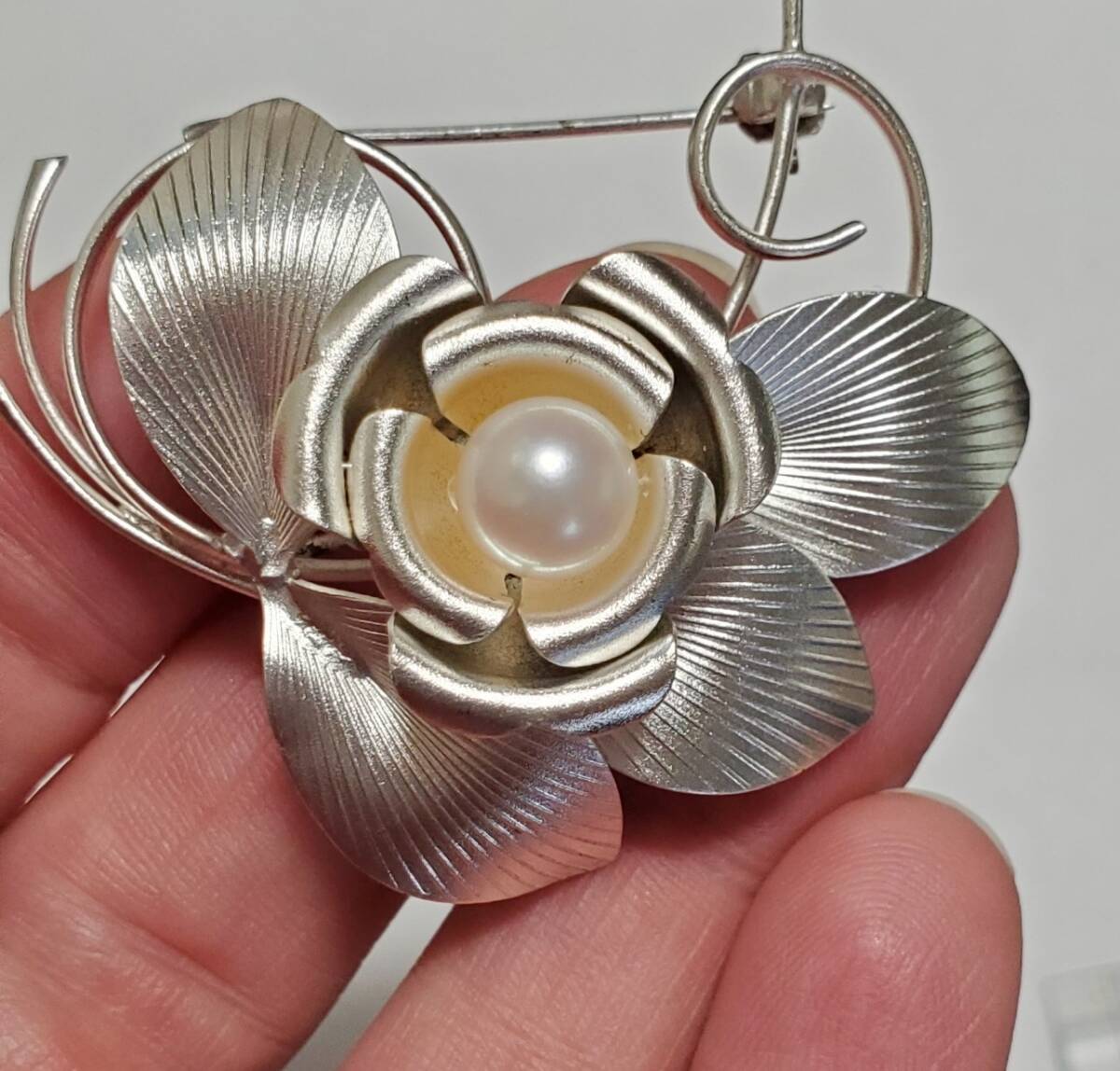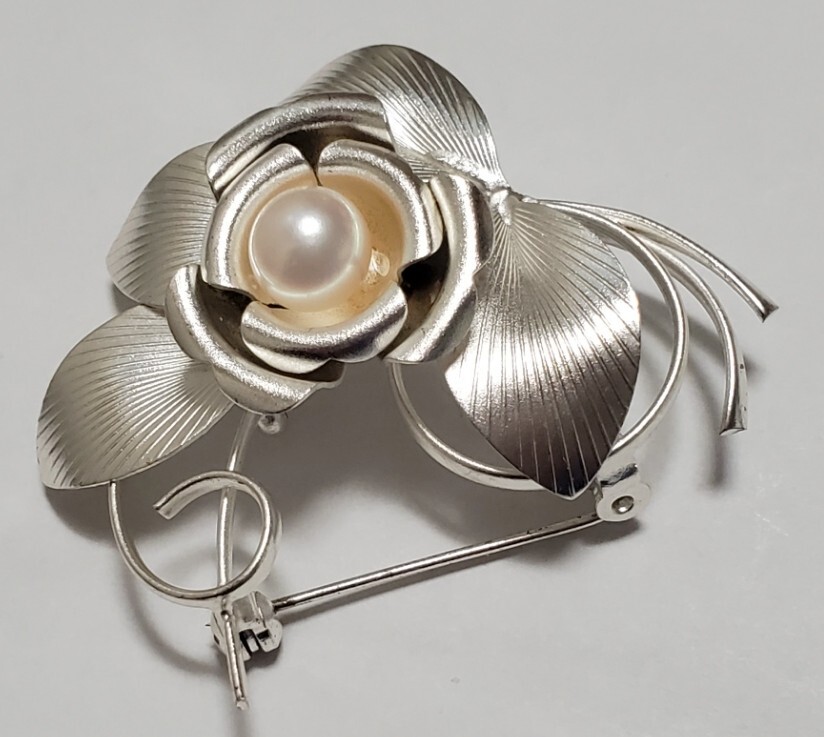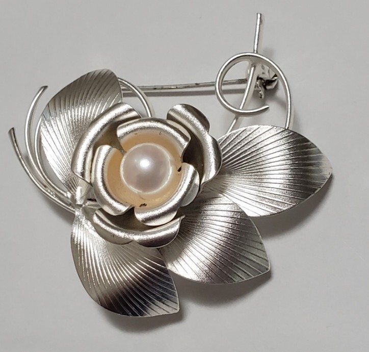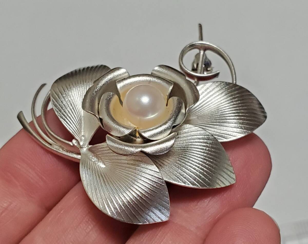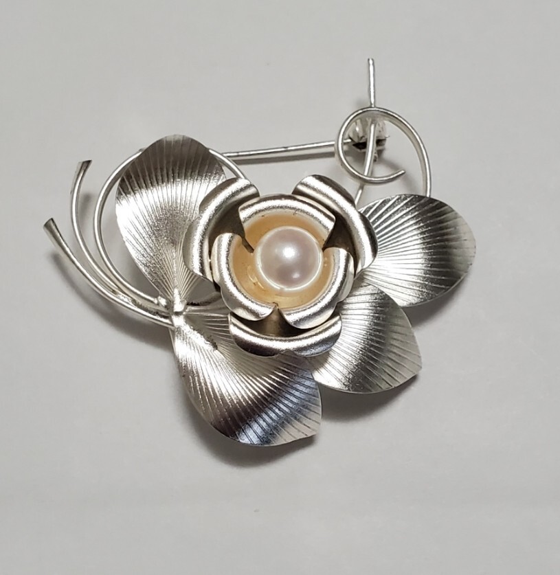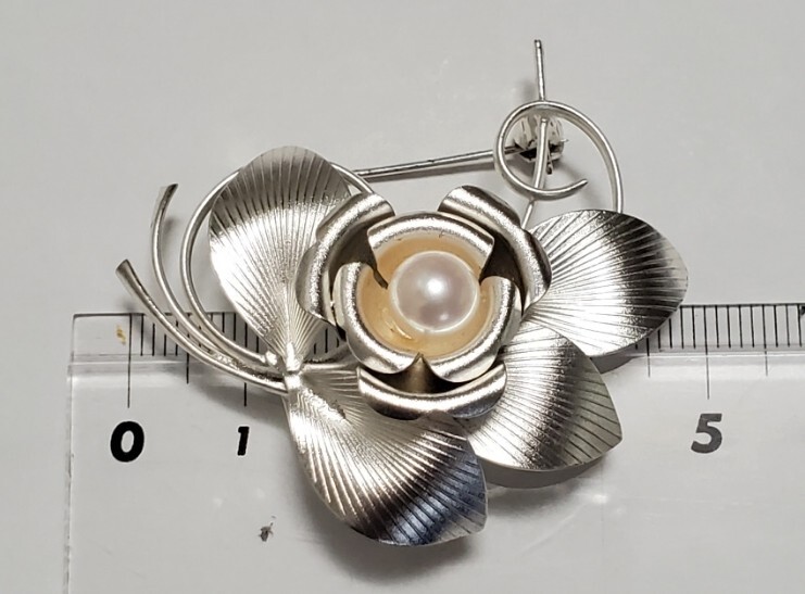 洋銀刻印 本真珠 帯留め ブローチ レディース アクセサリー 和装小物  9,4g