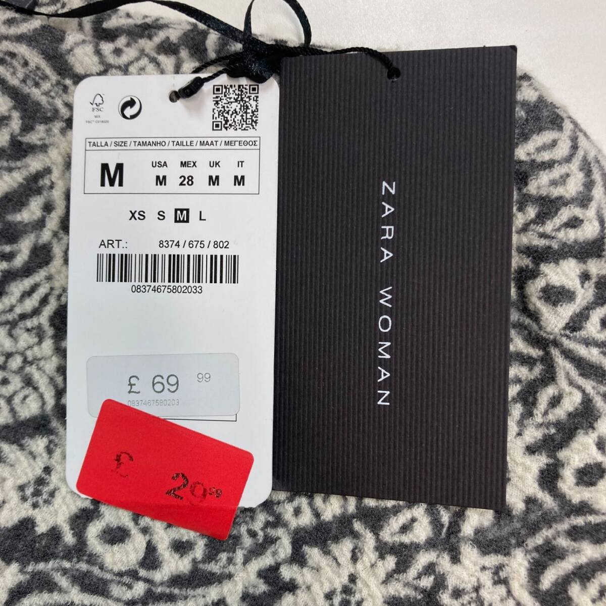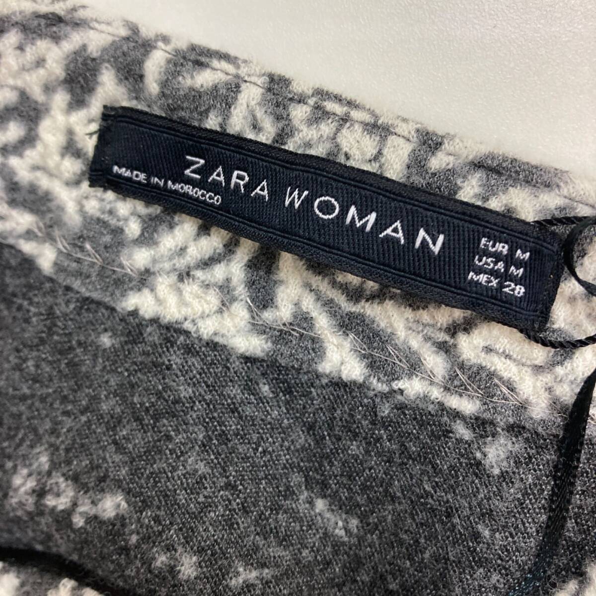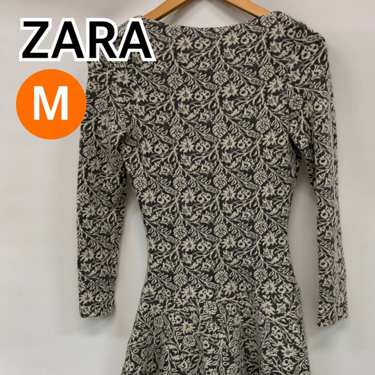 【新品】ZARA ザラ 膝丈ワンピース 長袖 フレアスカート レディース グレー 日本製 Mサイズ【CT1079】