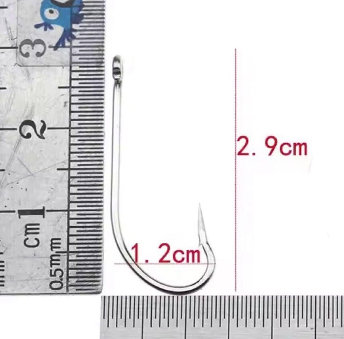実は本商品はある人のために輸入をはじめました。彼、T氏は2023年に70代で他界しました。とにかく鰻の穴釣りの名人で、出品者は何回も同行したことがあるのですが、かならず出品者の倍以上の鰻を捕獲する人でした。視力が衰えてきて仕掛作りに苦労していたので、出品者が毎年(とは言っても晩年の2年くらいでしたが)仕掛に関して準備しました。T氏はとにかく「大きい針、大きい針」と出品者にリクエストしました。最終的にT氏のお気に入りになったのが本商品です。5LからLまでを出品者の手のひらに乗せて見せると、T氏その時の気分で「今日はコレ」とニヤリとしなが仕掛を選んで川に入って行きました。山間部や上流ではなく、実は目と鼻の先に海がある場所でもこれらの針を使っていました。小さい鰻はリリースしていたので、それをさける目的があったのだとも思われます。余談でした。