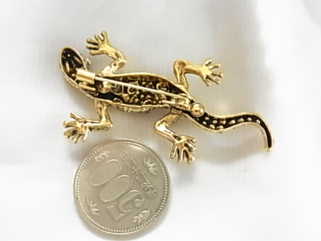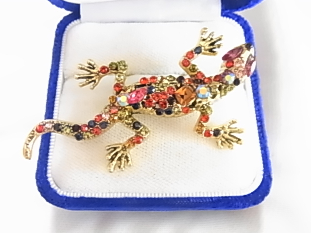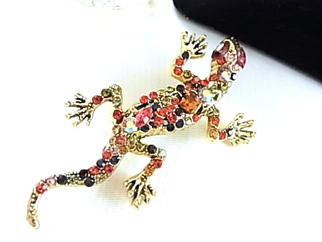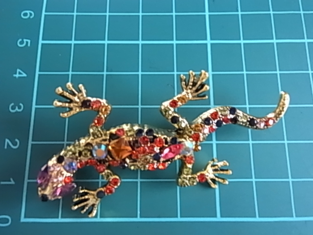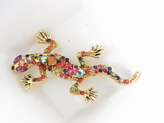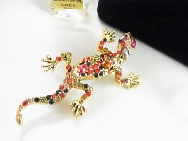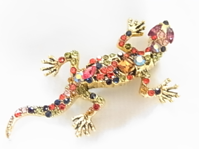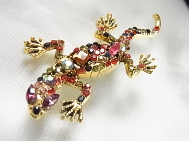 □未使用品 キラキラ輝くマルチカラーのラインストーン ビジュー 輝石 トカゲのモチーフ ヤモリ? 爬虫類 素敵なブローチ
