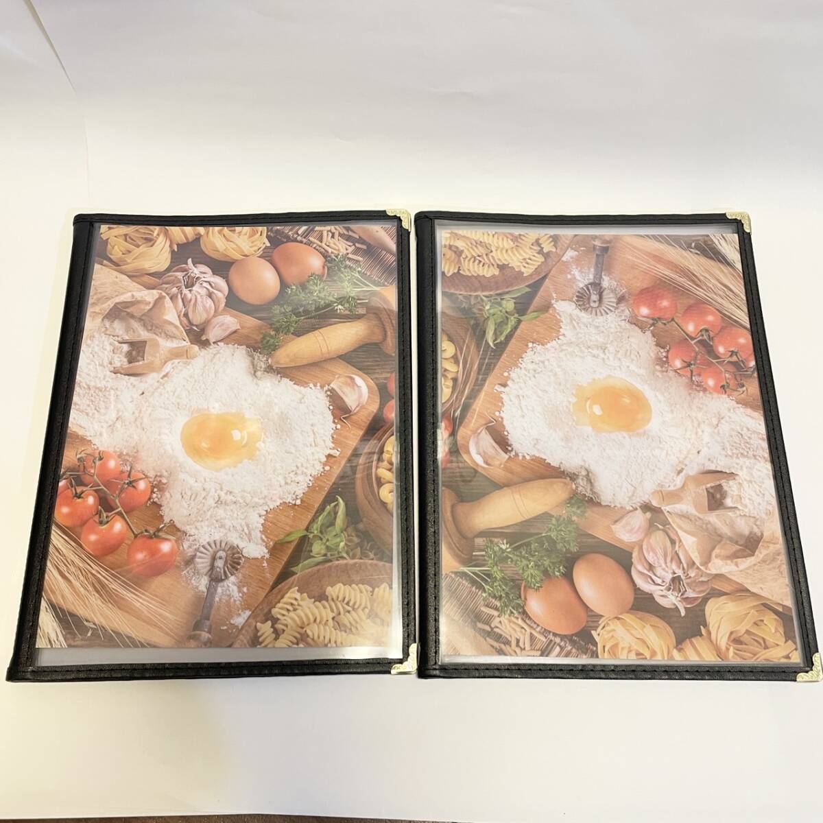 仕様:【ページ】8ページ(4枚8面) A4対応 ;【対応中紙サイズ】A4用紙(210mm×297mm)【セット内容】:メニューブック2冊入り