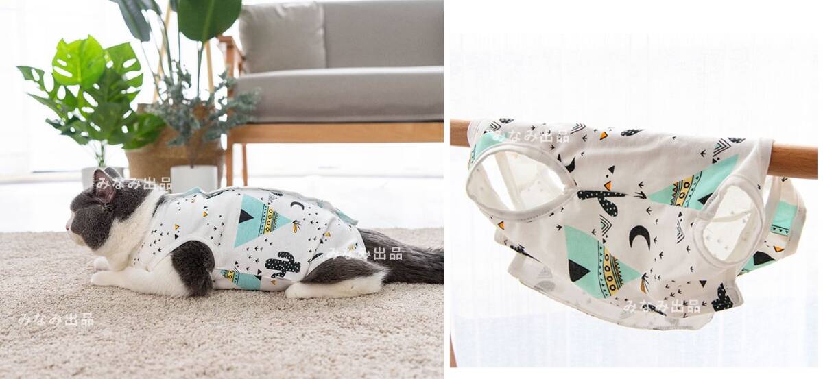 猫 小型犬 術後ウェア エリザベスカラーの代わり エリザベスカラー 抗菌素材 避妊手術 去勢手術 皮膚保護 離乳 ペット服 ペットウェア  手術服 雌猫 雌犬 傷舐め防止 犬猫兼用