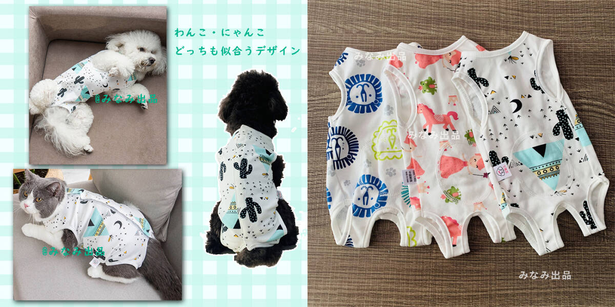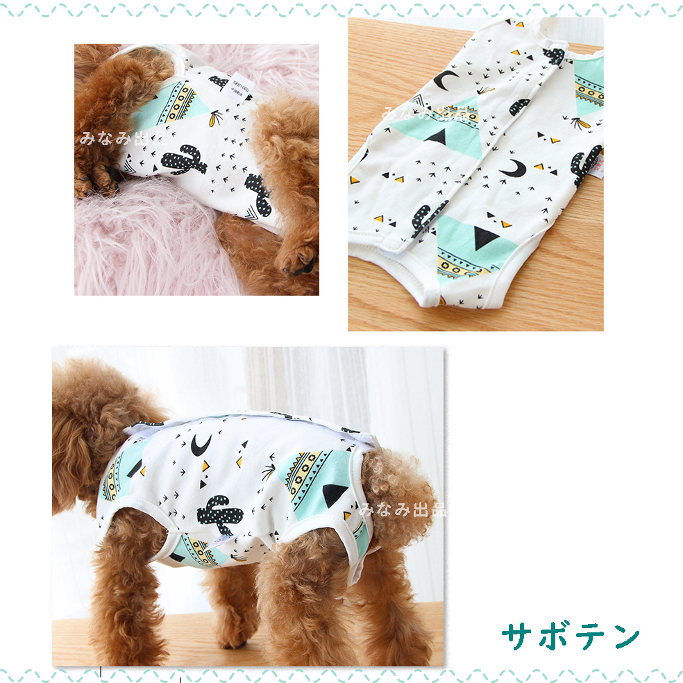 【サボテン柄S】術後ウェア カラー 服 猫犬雄雌 去勢避妊手術 離乳皮膚傷口保護