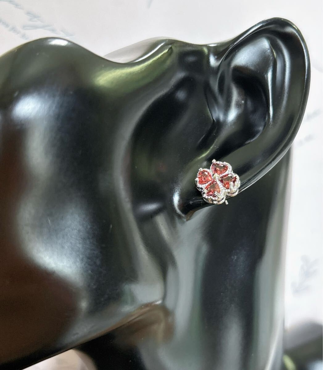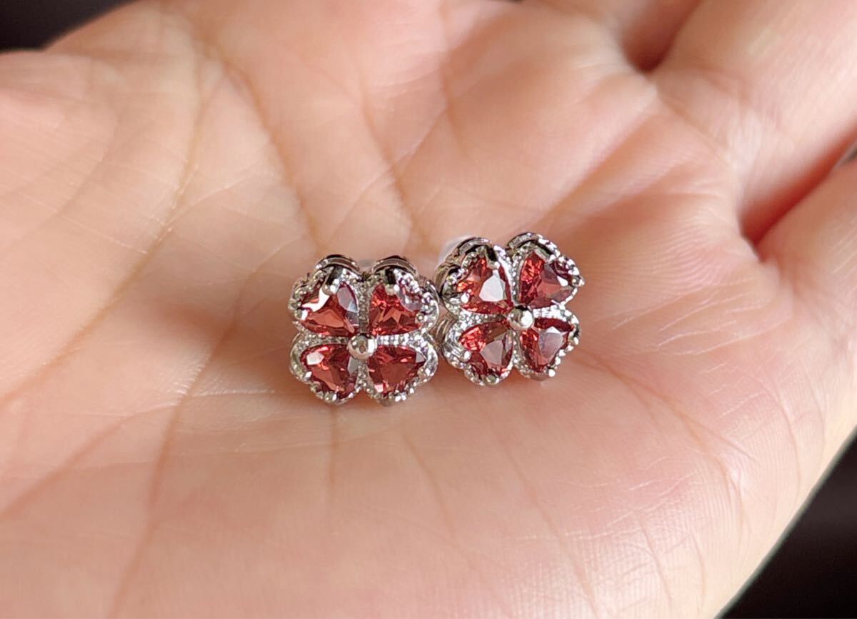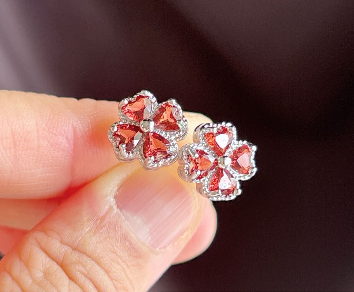 天然石ワインレッドガーネット(石榴石)ピアスサイズ約:11mm*11mm*厚さ4.6mm;