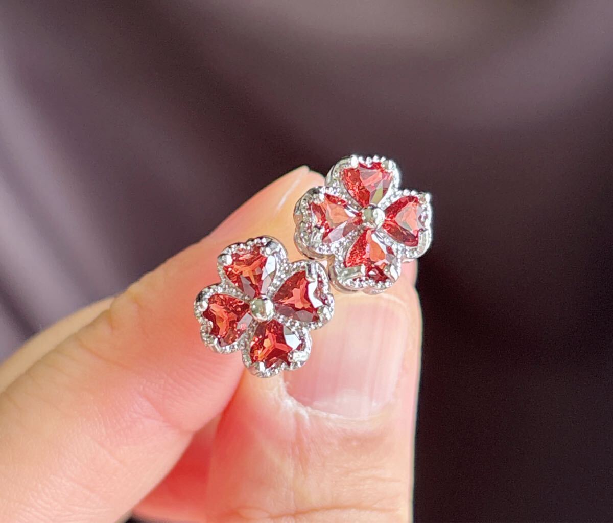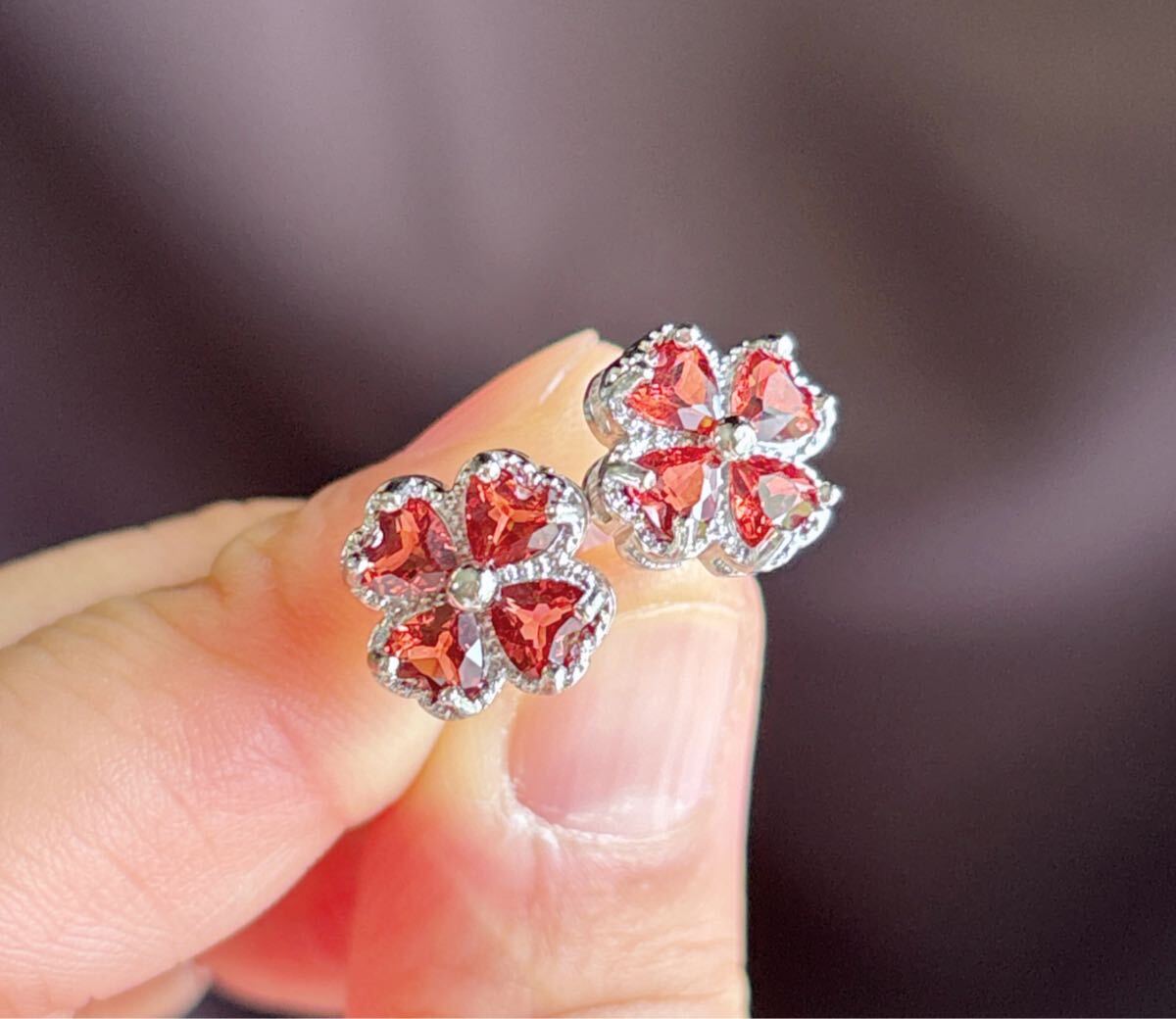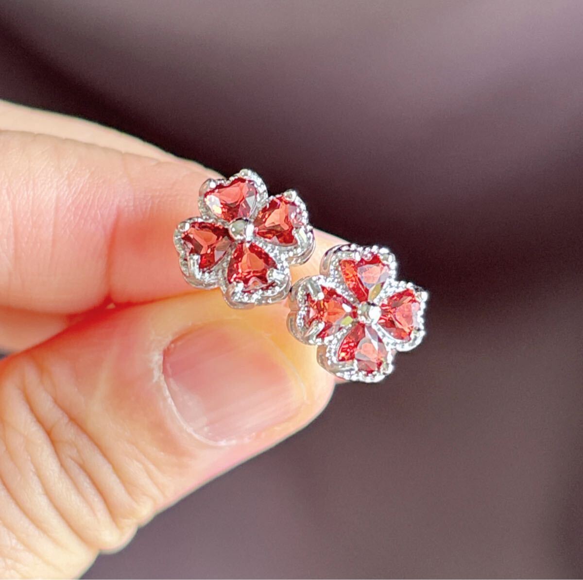 天然石ワインレッドガーネット(石榴石)ピアスサイズ約:11mm*11mm*厚さ4.6mm;