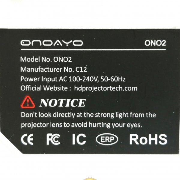 ONOAYO 1080P ビデオプロジェクター ONO2 ※リモコン/単4電池2個使用(別売)【PSEマークあり】 19 00187