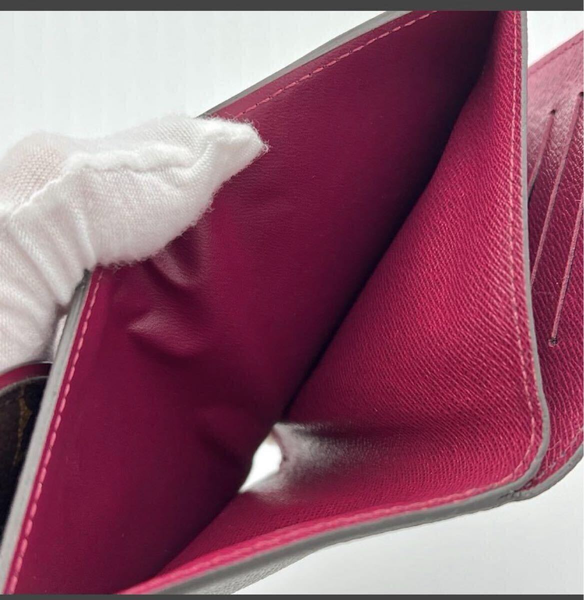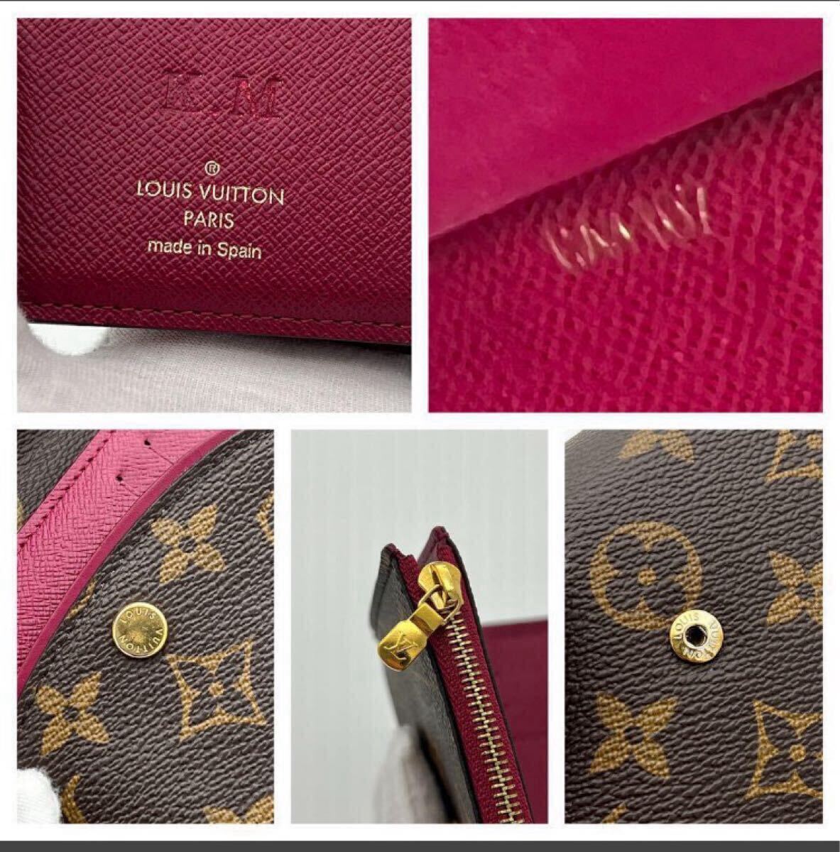ルイヴィトン 三つ折り財布 ポルトフォイユマリアンヌ フューシャ イニシャルあと有 LOUIS VUITTON 財布