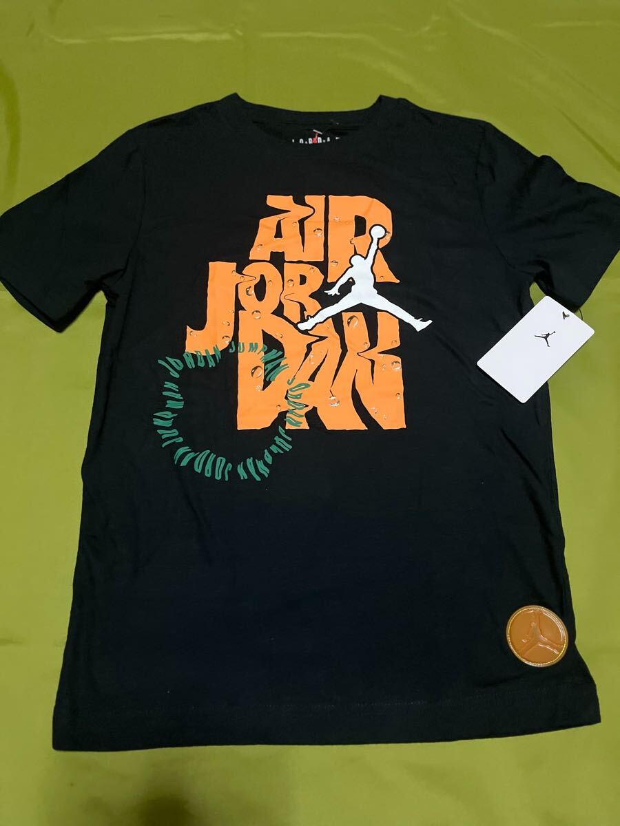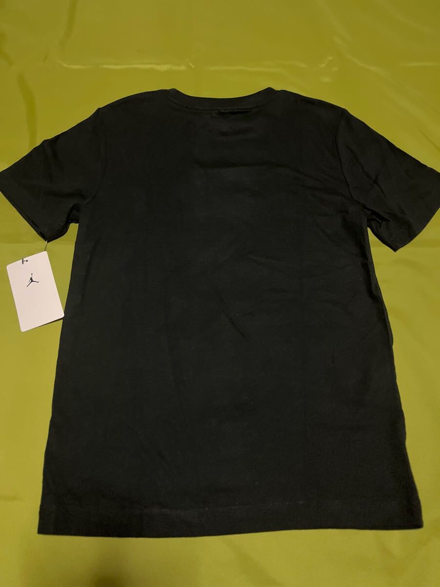 新品タグ付 ジョーダンの半袖Tシャツ 。サイズ:M(132~147㎝)。色:黒。海外のナイキ直営店での購入です。海外ボーイズサイズの10~12歳用です。日本サイズよりかなり大きめだと思います。実寸サイズを参考になさってくださいね。シックな黒地にフロント部分のプリントが斬新でお洒落です。これからの季節にお勧めです。実寸肩幅:37㎝ 身幅:42.5㎝ 着丈:58㎝。 落札後のキャンセル 返品はお断り申し上げます。落札後に落札者様よりご連絡をお願いします。