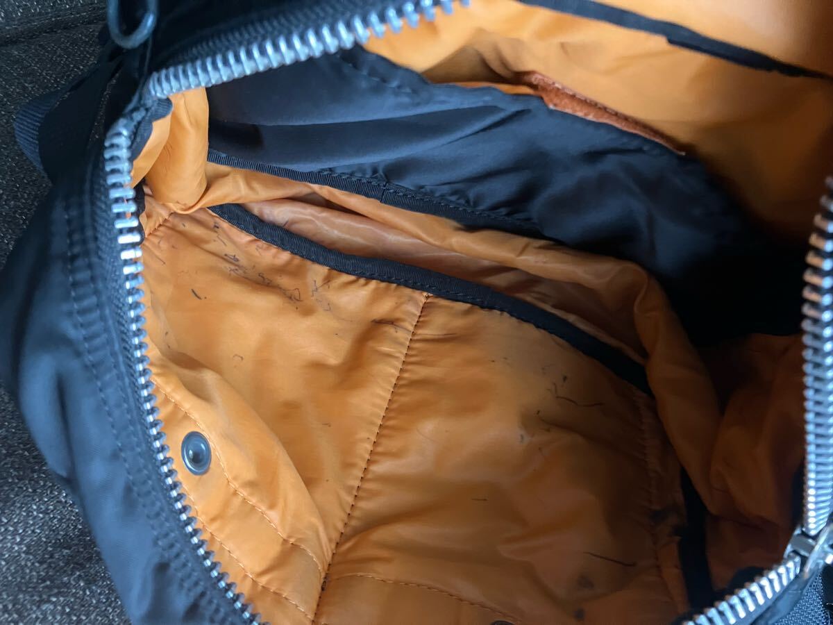 言わずと知れたPORTERの代名詞的モデルで使い勝手抜群です。内側のペン汚れ、メインファスナーのつまみが紛失しておりますが開閉はスムーズです。