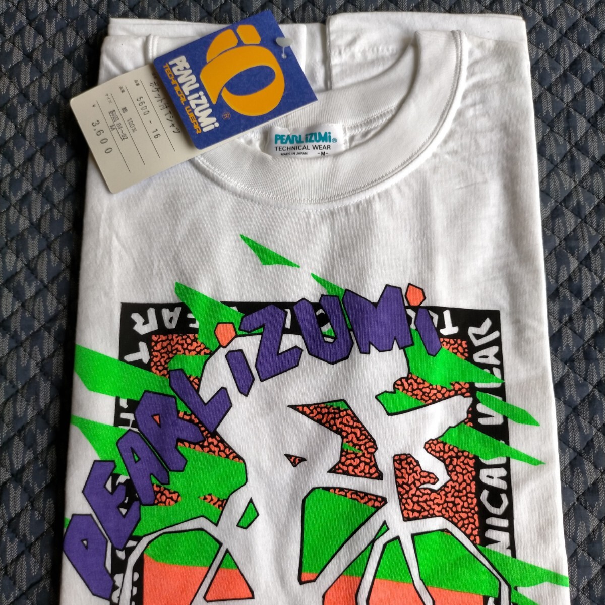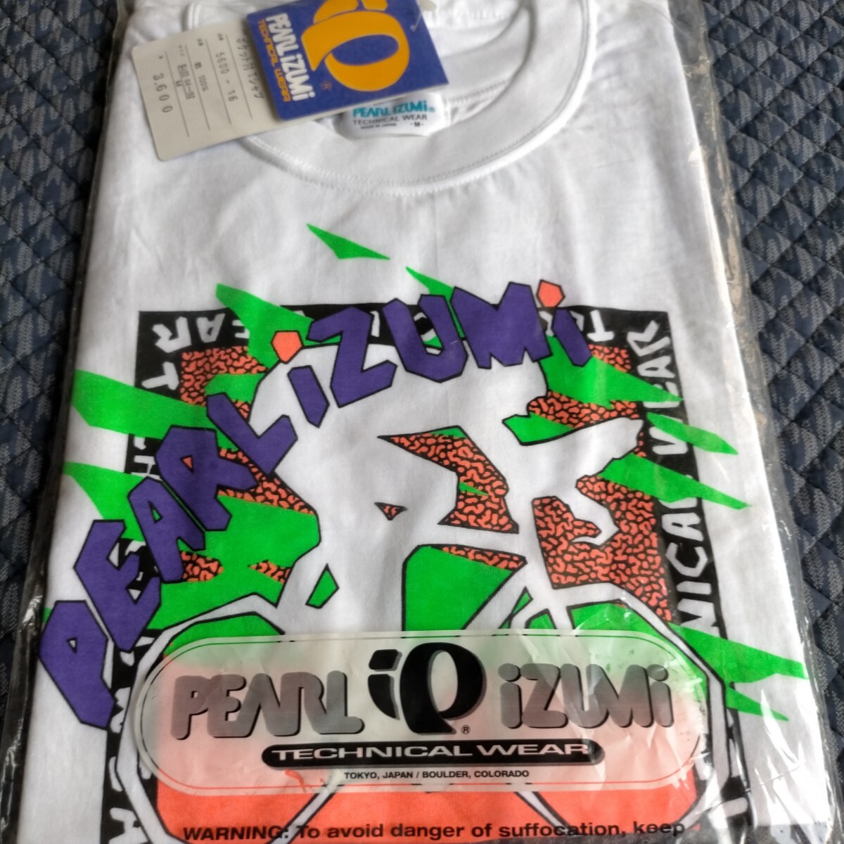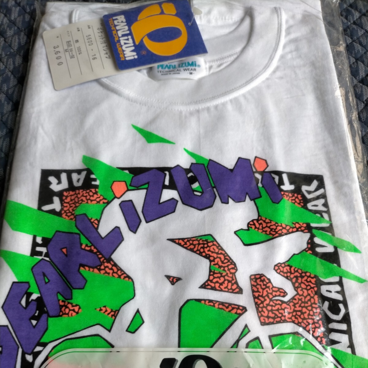 90年代初期のパールイズミの背中ポケット付きのTシャツです。未使用・袋入りのデッドストックです。日本製なのも今や希少性高いですね。デザインも2周ぐらい回ってカッコ良いです。