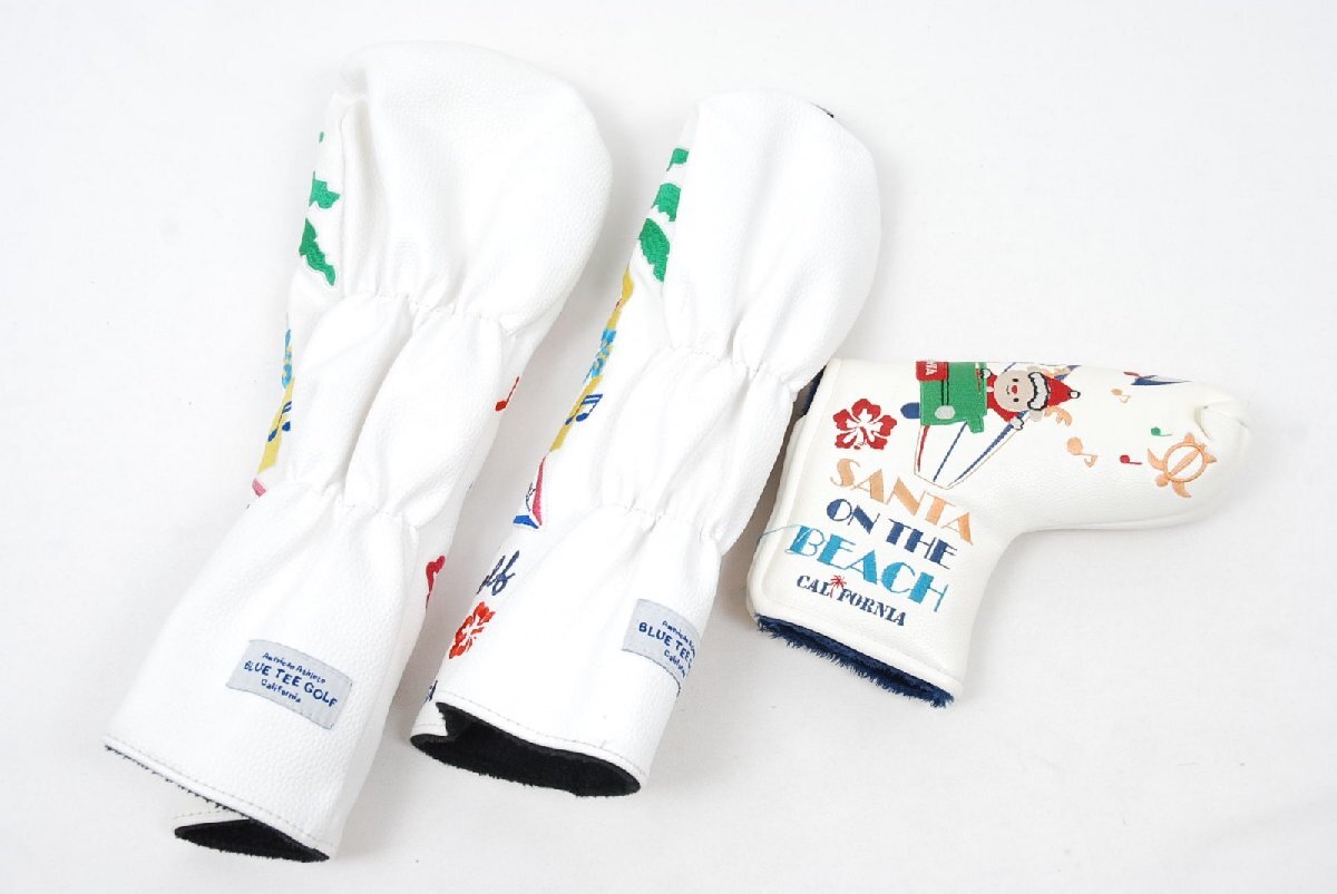 coco 中古【値下げ】ブルーティーゴルフ BLUE TEE GOLF ヘッドカバー ホワイト 3点セット サンタ ドライバー/フェアウェイ/パター 77385