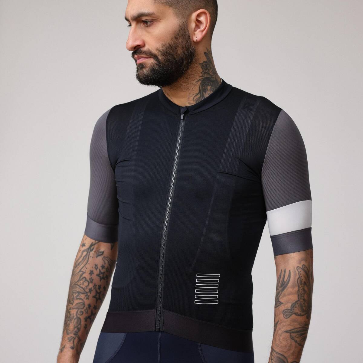 確実なフィット感を生み出すグリッパー付きの、コントラストの効いた袖