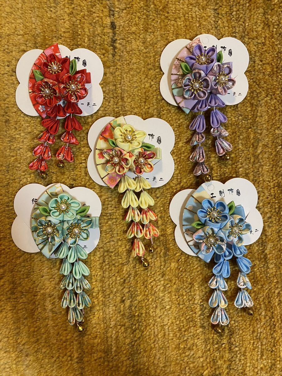 こちら、つまみ細工の可愛いヘアアクセサリーです*
