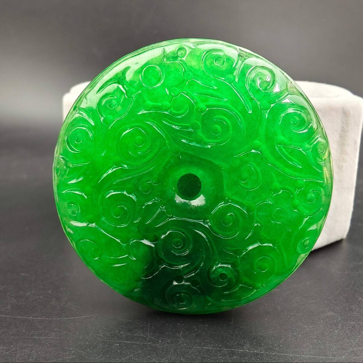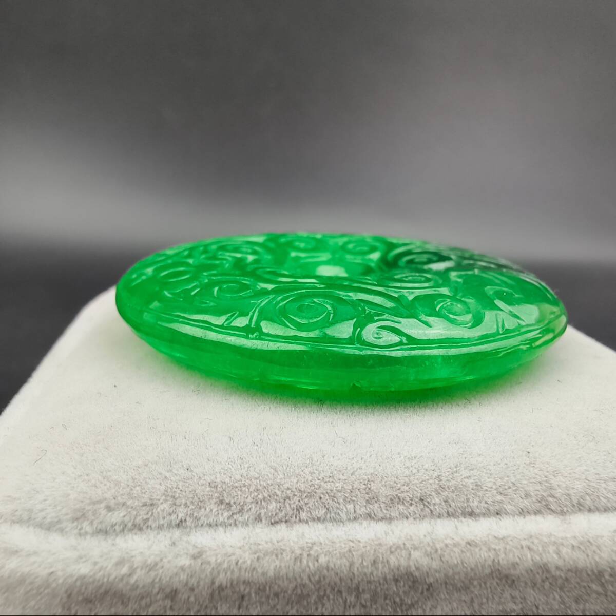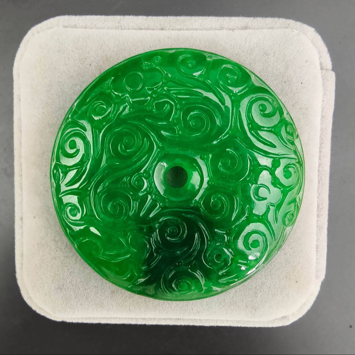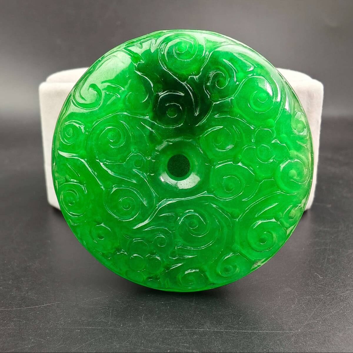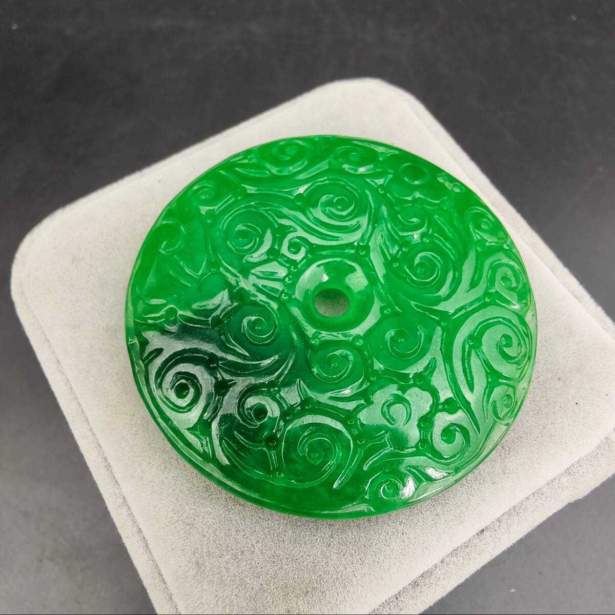 【超珍館蔵】翡翠製 細密彫 平安扣ペンダント 根付 裝身具 古賞物 古董品 古美術品 時代物 旧家蔵出 稀少珍蔵品
