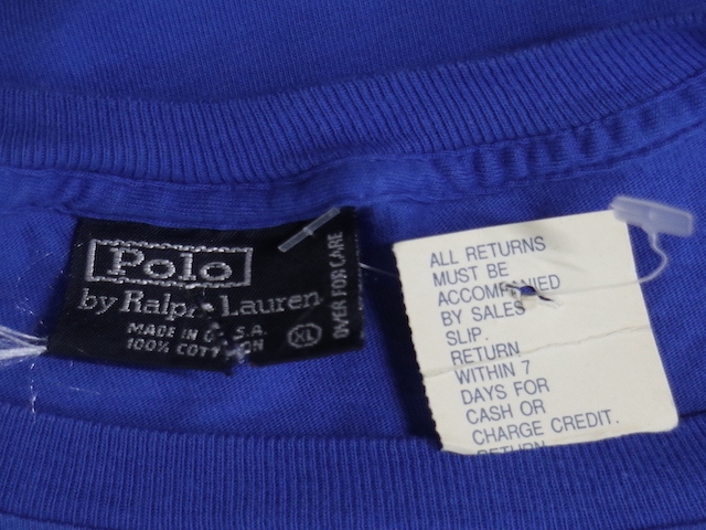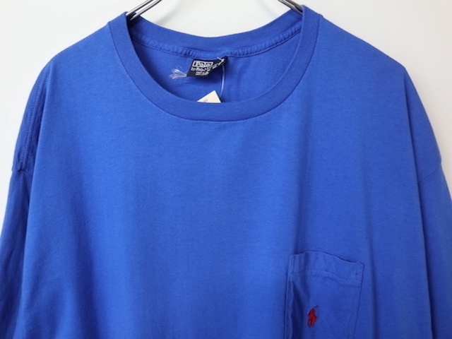 タグ付き未使用品 90s00s USA製 Polo by Ralph Lauren ラルフローレン ワンポイント 半袖 Tシャツ(メンズ XL)ブルー