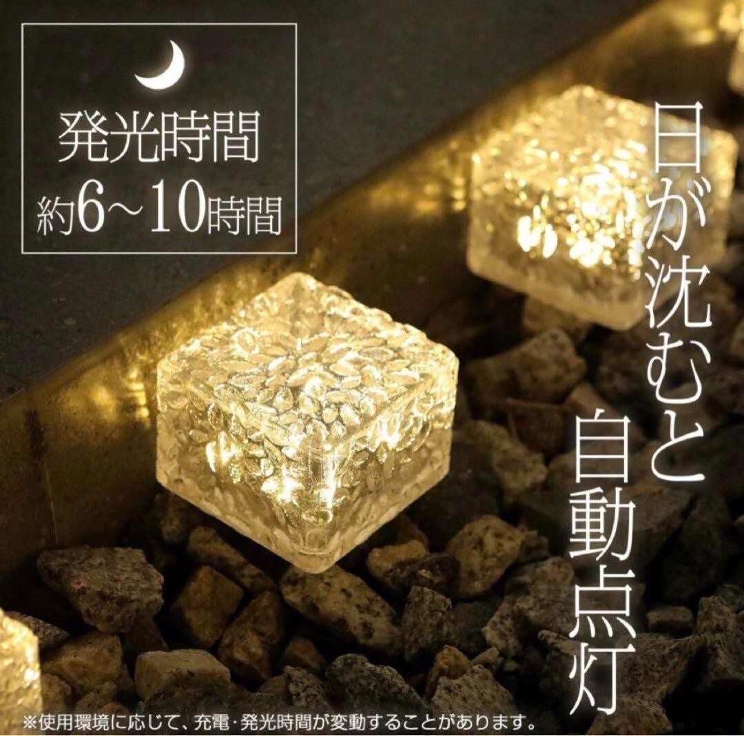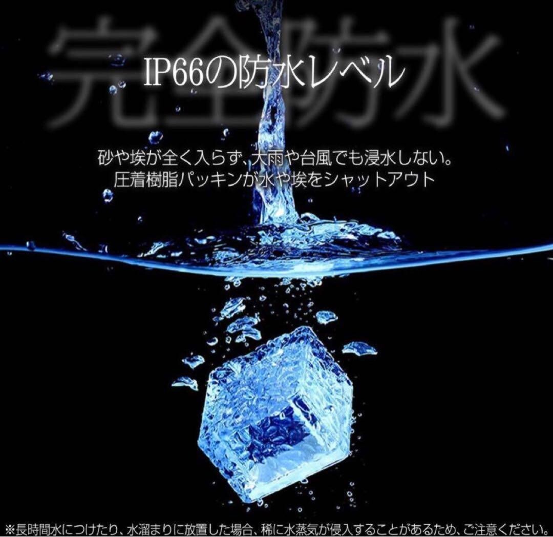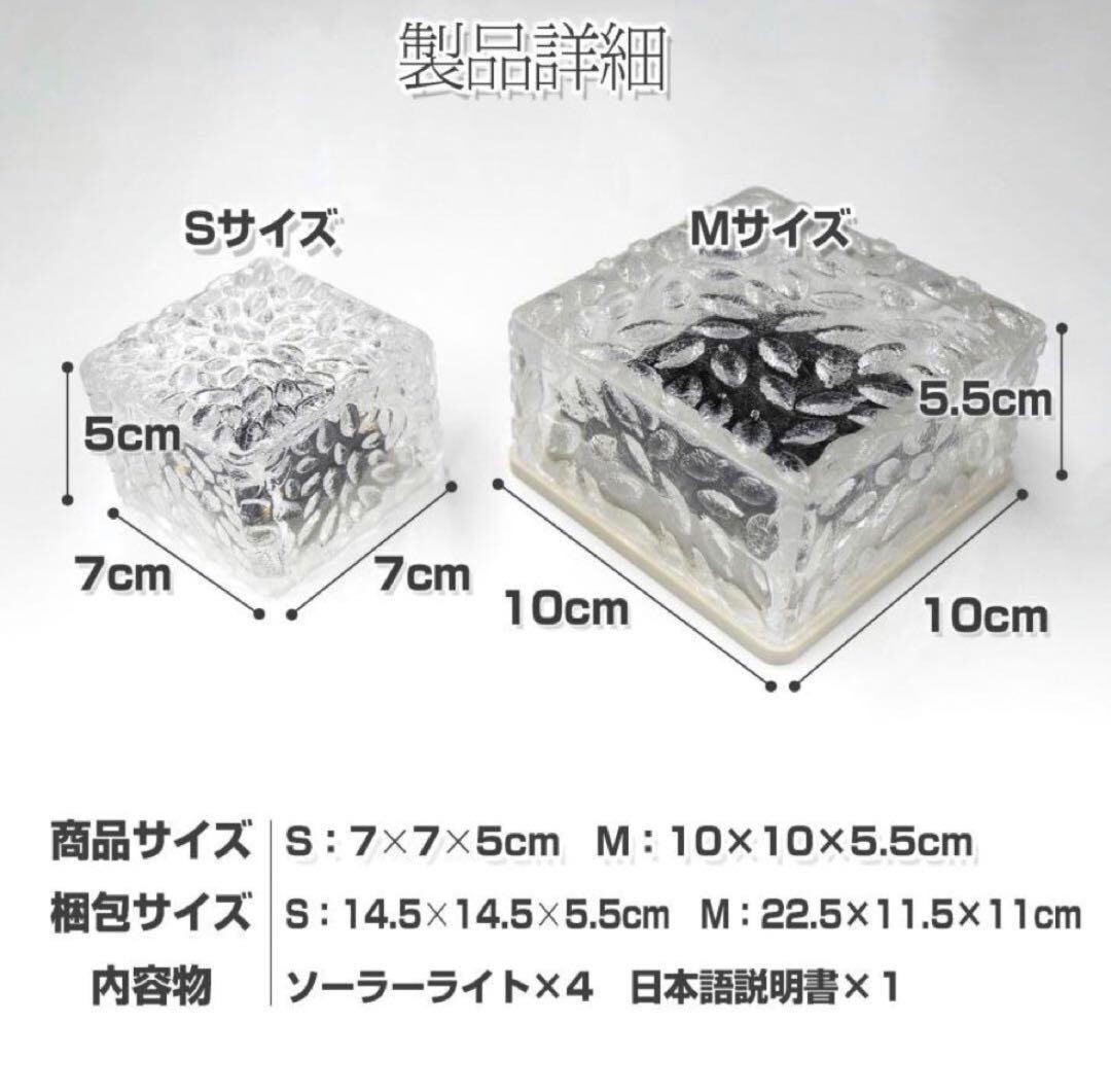 ●即日?2営業日内スピード発送!● ●初期不良対応いたします!● *沖縄、北海道への発送は追加料金がかかりますので 事前にコメントいただきますようお願いいたします。 ?【製品仕様】? ●Sサイズ?●簡単設置?ガーデンライトを置くだけで簡単設置。自動点灯でわずらわしい電池交換や充電、スイッチのON/OFF作業が必要ありません。?●ランプが4か所で明るい?1つのLEDを搭載した他社類似商品が多い中、弊社は4つのLEDを搭載しさらに明るいライトです。?●ガラス製ではないので、割れる割れる心配なし。?衝撃に強い高密度ポリスチレンを使用。あやまって踏んづけたり、蹴とばしたり、落としても簡単には壊れません。?●高い防塵防水性能(台風が来ても大雨が降っても)?ソーラーライトはIP66の防水レベル。砂やほこりが全く入らず、大雨や台風だけでも浸水しません。?圧着樹脂パッキンが水やほこりをシャットアウトします。?●長時間バッテリー?日中は自動で充電してくれます。充電時間は約6?8時間。?日が沈むと自動点灯します。発光時間はおそよ6?10時間。?電気代がほぼ0円で省エネルギー。電池交換でさらに長くお使いいただけます。?●温度に強い?優れた耐熱・耐寒性。大雪の日でも-20℃以下でも発光効率が低下せず、60℃まで耐えるので、炎天下の日も放置してもOKです。