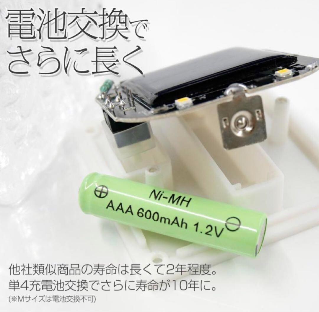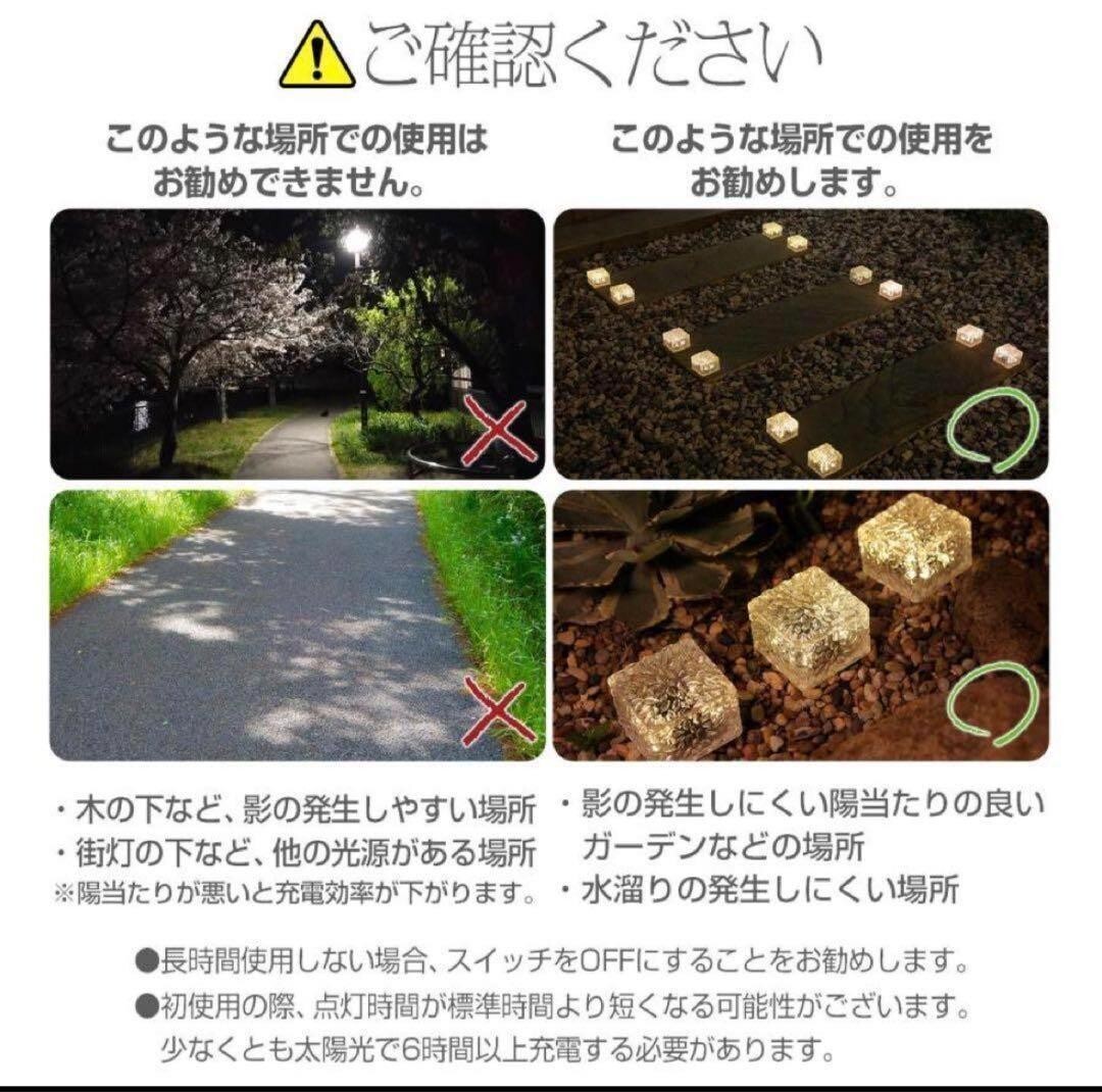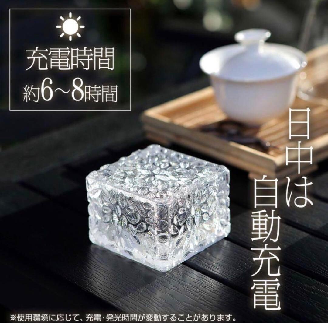 ●即日?2営業日内スピード発送!● ●初期不良対応いたします!● *沖縄、北海道への発送は追加料金がかかりますので 事前にコメントいただきますようお願いいたします。 ?【製品仕様】? ●Sサイズ?●簡単設置?ガーデンライトを置くだけで簡単設置。自動点灯でわずらわしい電池交換や充電、スイッチのON/OFF作業が必要ありません。?●ランプが4か所で明るい?1つのLEDを搭載した他社類似商品が多い中、弊社は4つのLEDを搭載しさらに明るいライトです。?●ガラス製ではないので、割れる割れる心配なし。?衝撃に強い高密度ポリスチレンを使用。あやまって踏んづけたり、蹴とばしたり、落としても簡単には壊れません。?●高い防塵防水性能(台風が来ても大雨が降っても)?ソーラーライトはIP66の防水レベル。砂やほこりが全く入らず、大雨や台風だけでも浸水しません。?圧着樹脂パッキンが水やほこりをシャットアウトします。?●長時間バッテリー?日中は自動で充電してくれます。充電時間は約6?8時間。?日が沈むと自動点灯します。発光時間はおそよ6?10時間。?電気代がほぼ0円で省エネルギー。電池交換でさらに長くお使いいただけます。?●温度に強い?優れた耐熱・耐寒性。大雪の日でも-20℃以下でも発光効率が低下せず、60℃まで耐えるので、炎天下の日も放置してもOKです。