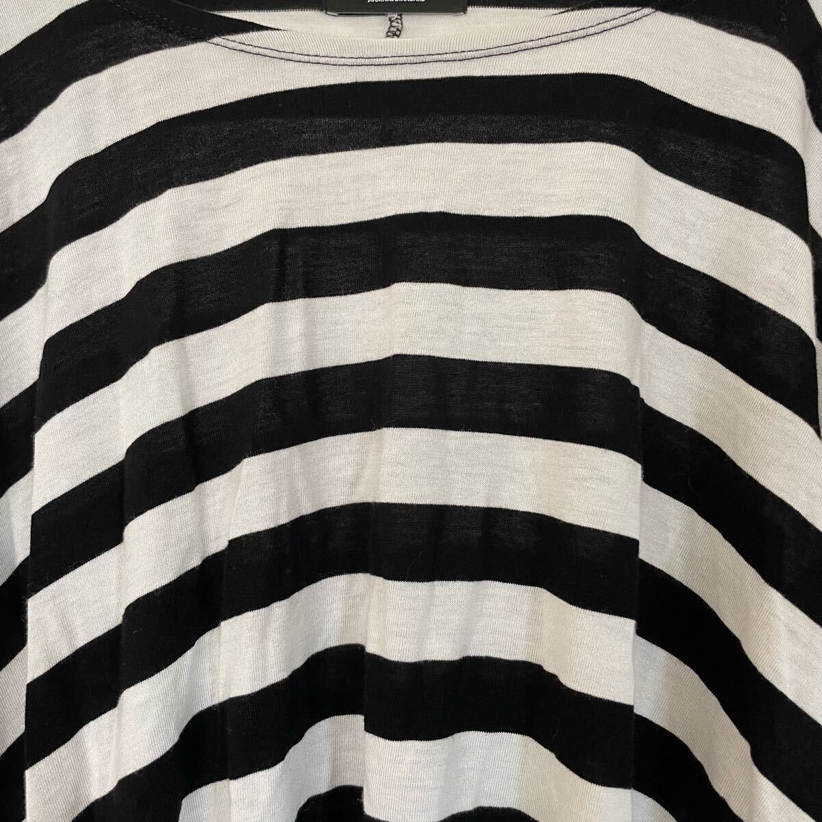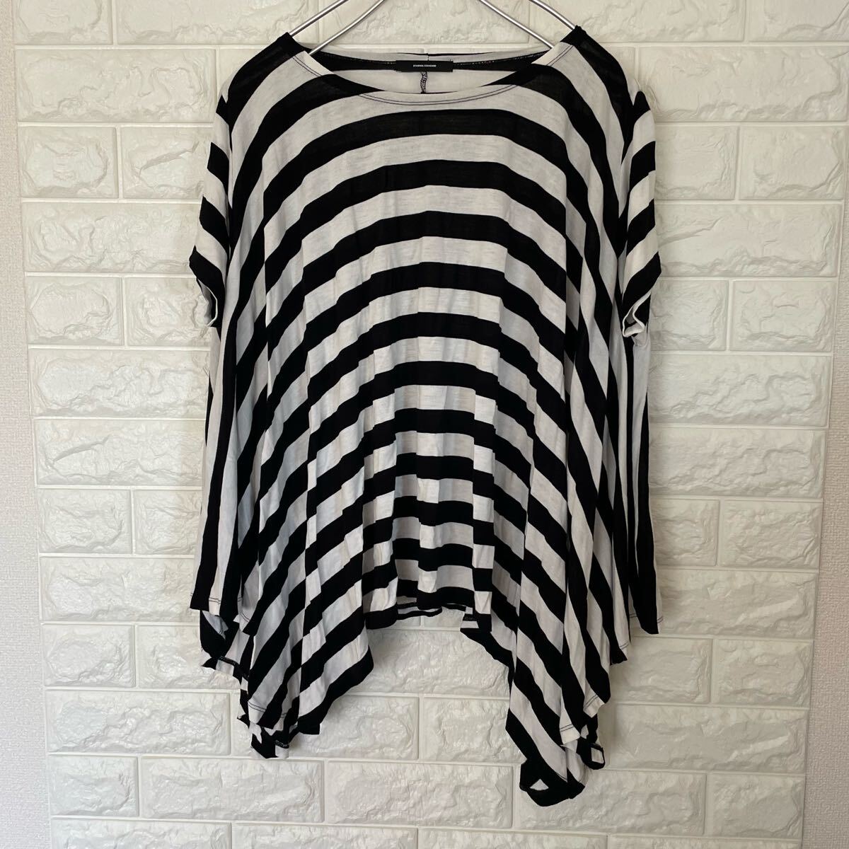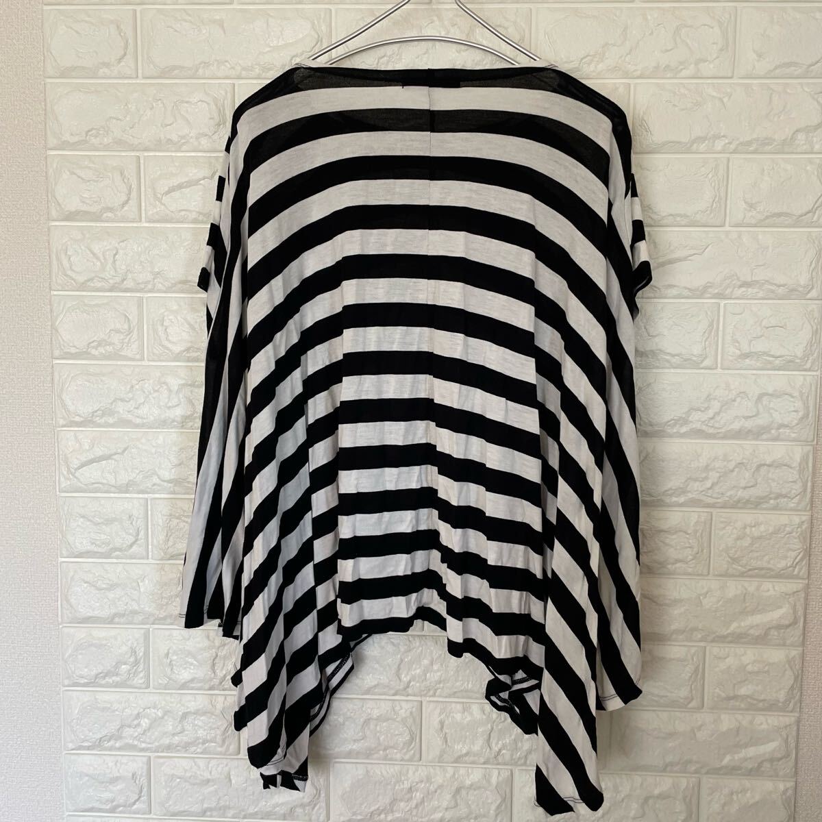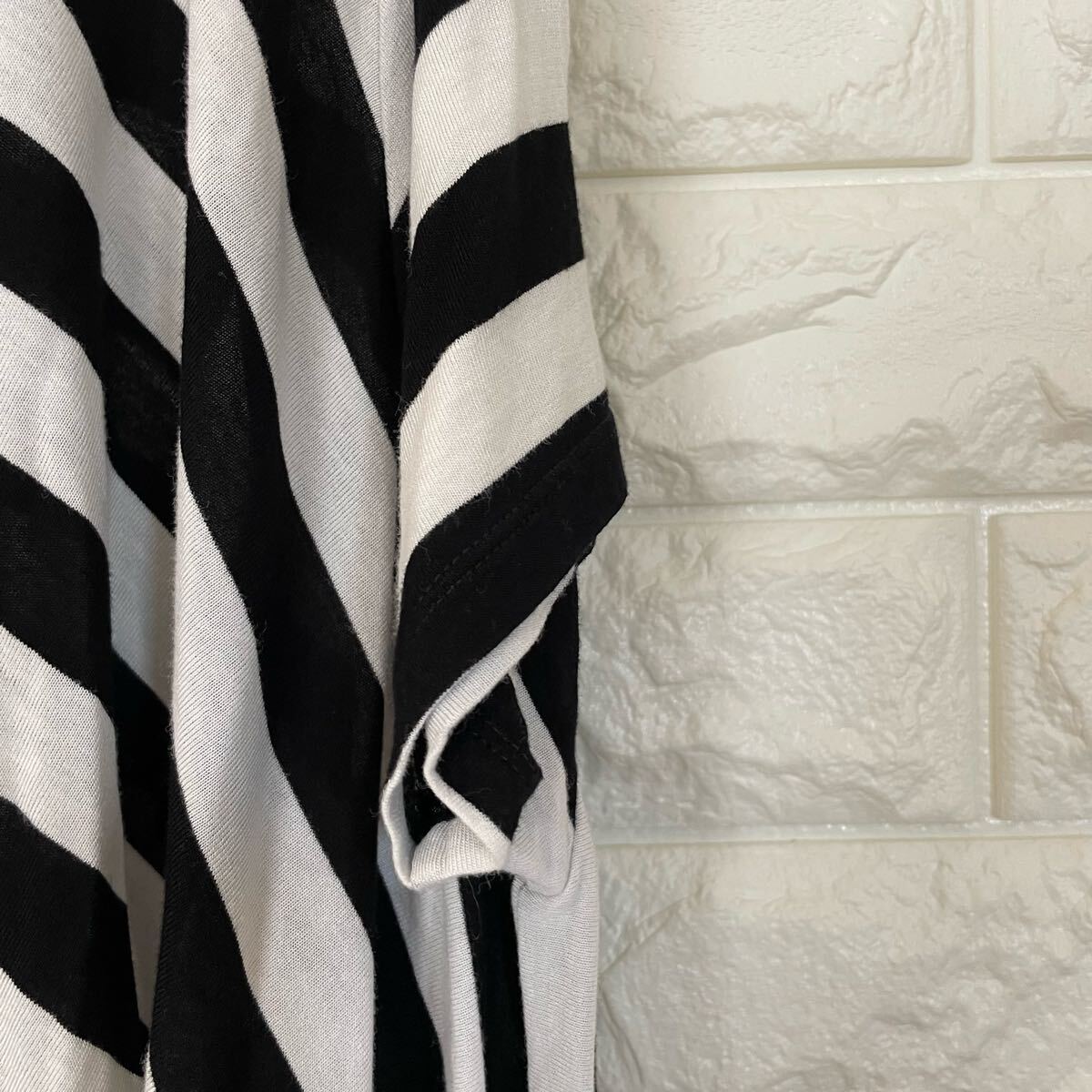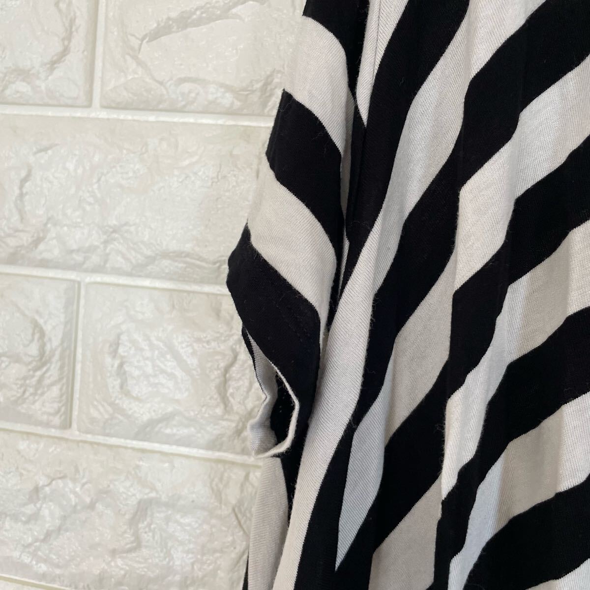 ストライプデザインのルーズフィットTシャツ、軽量素材で快適な着心地。