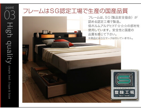 照明・棚付き収納ベッド ポケットコイルマットレス付き セミダブル