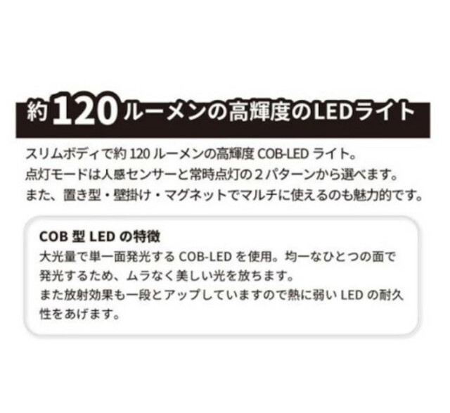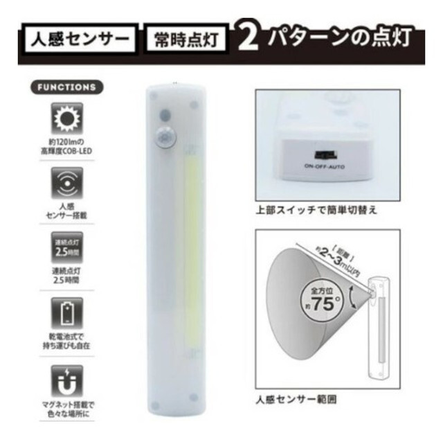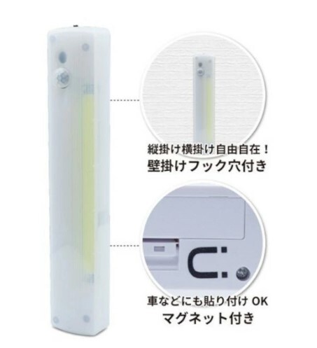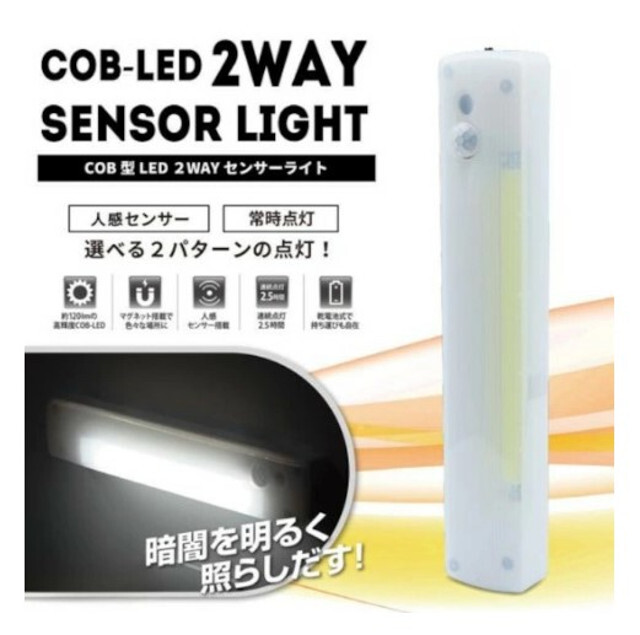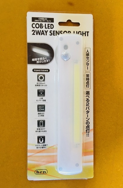LED センサーライト HRN-598 屋内 電池式 COB型 2WAY 人感 自動点灯消灯 階段 廊下 足元灯 フットライト マグネット 明るい 室内用 平野商会