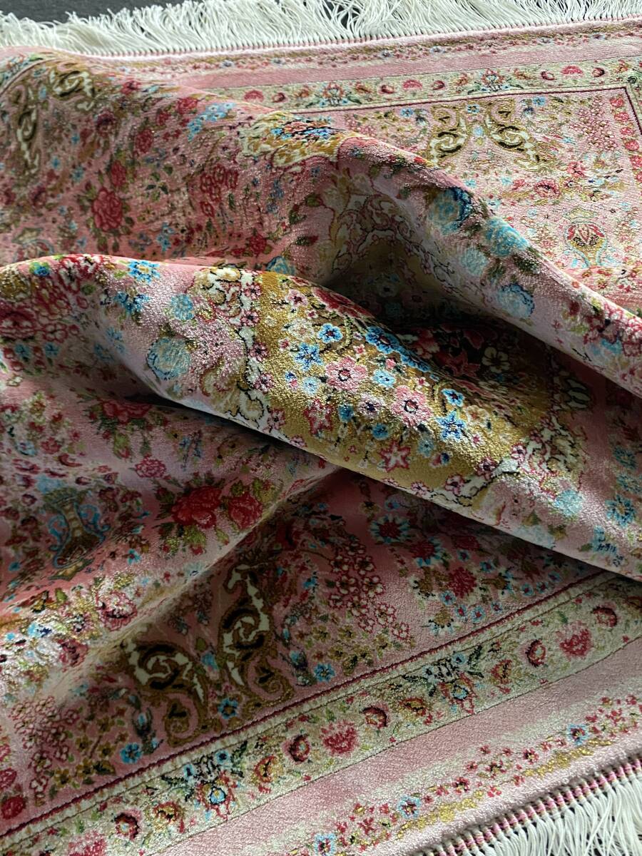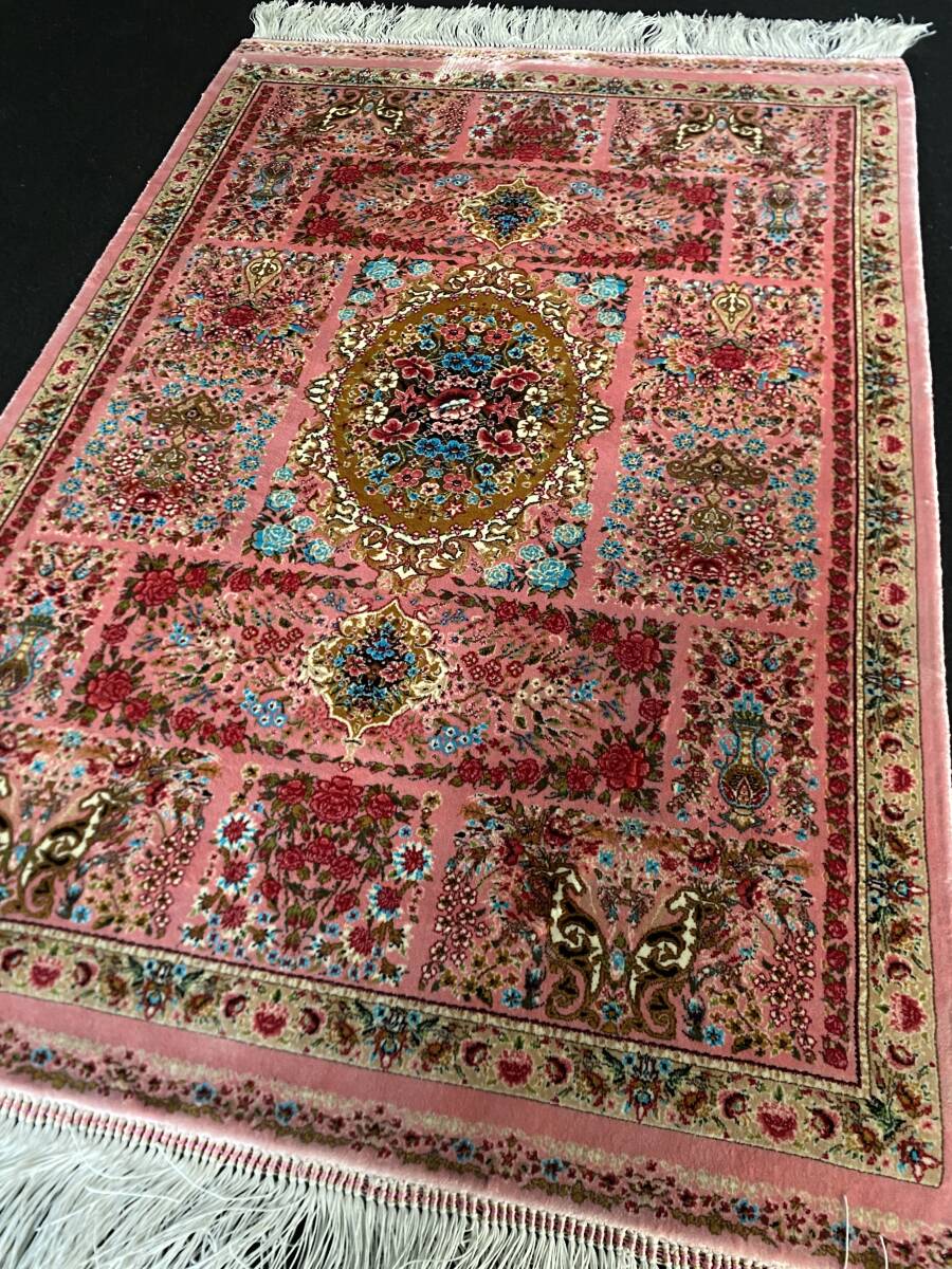 クム絨毯の歴史は1930年頃からと浅く、最初はウール絨毯を、後にシルク絨毯を織るようになりました。絹の産地としても有名なクムで、現在作られるほとんどの絨毯は100%シルク製です。
