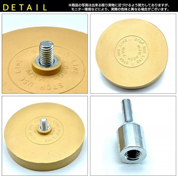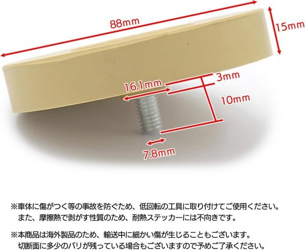 ※車体に傷がつく等の事故を防ぐため、低回転の工具に取り付けてご使用ください。また、摩擦熱で剥がす性質のため、耐熱ステッカーには不向きです。